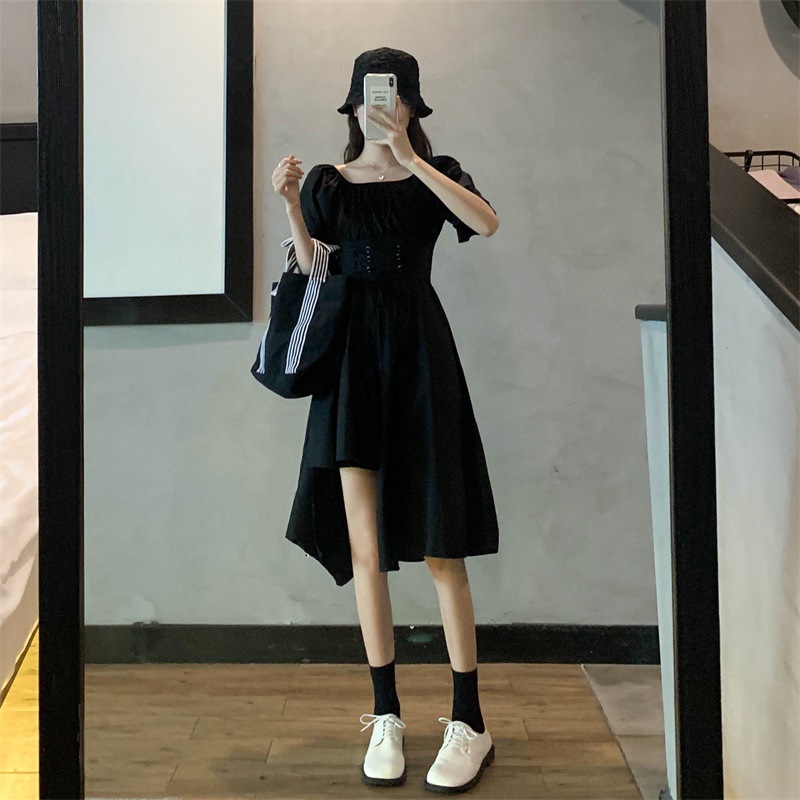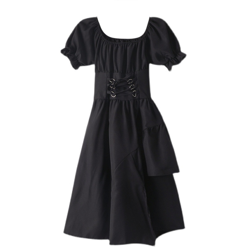 甜酷风裙子女装夏季新款设计感不规则收腰复古初恋短袖连衣裙