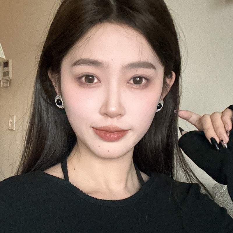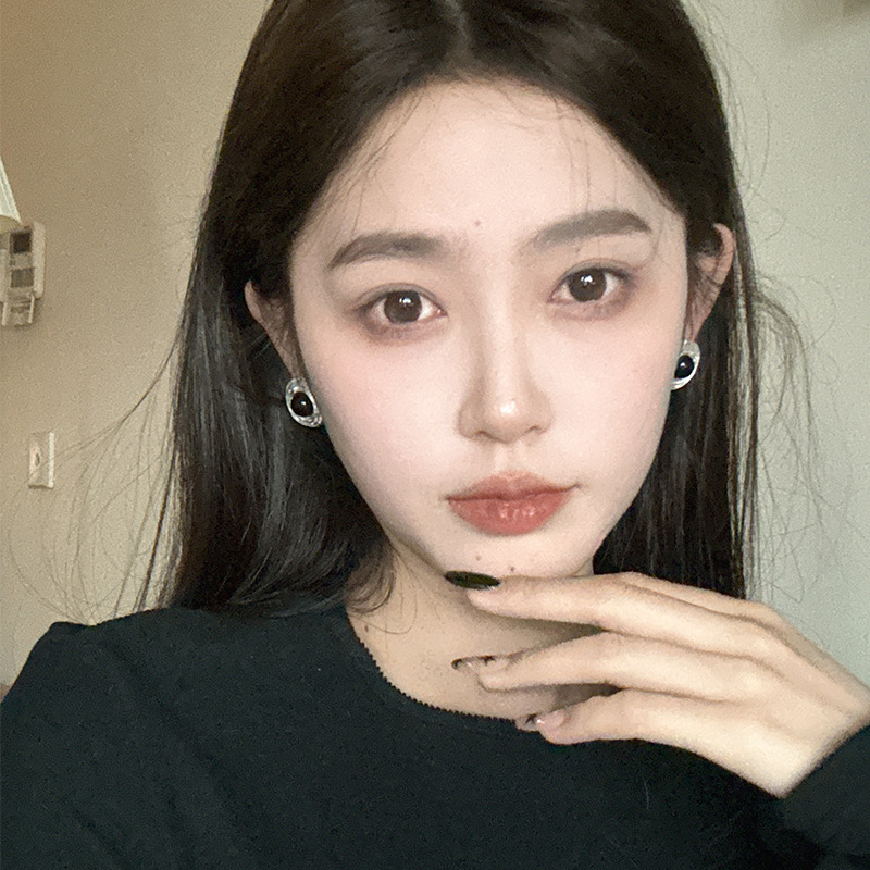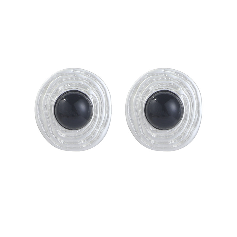 法式复古珠珠耳环气质独特磨砂银色圆形耳钉简约百搭高级感耳饰