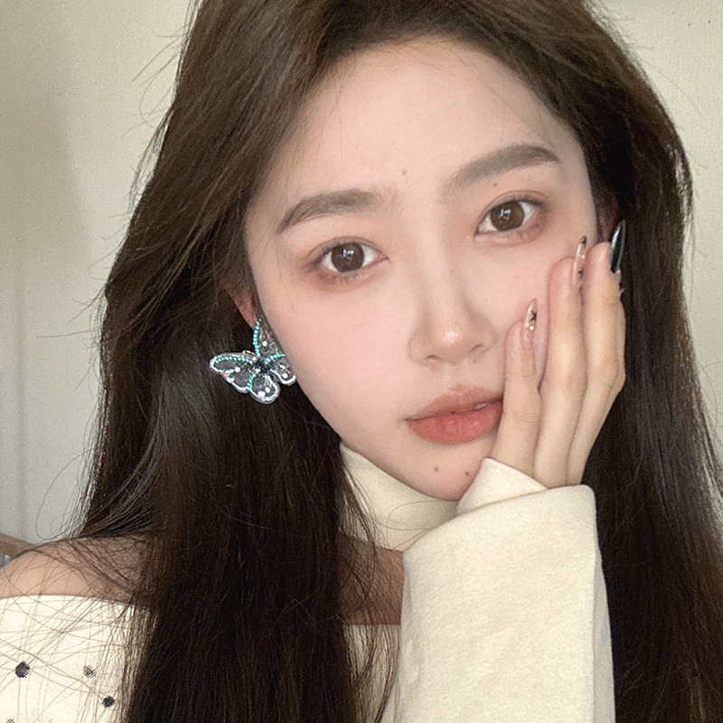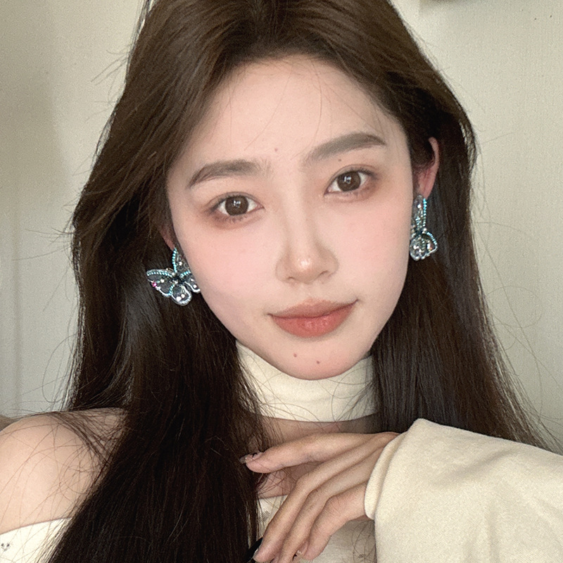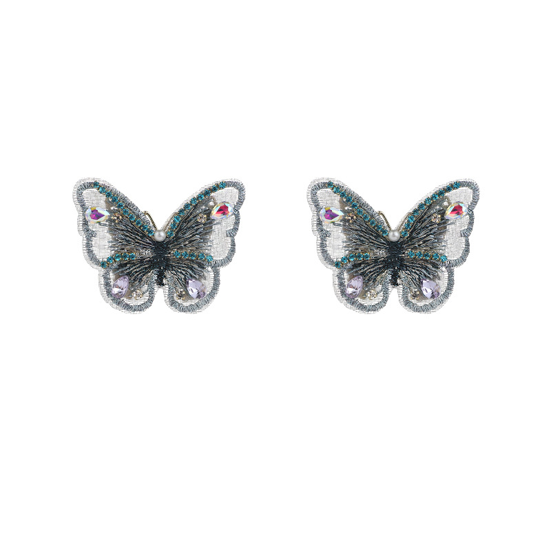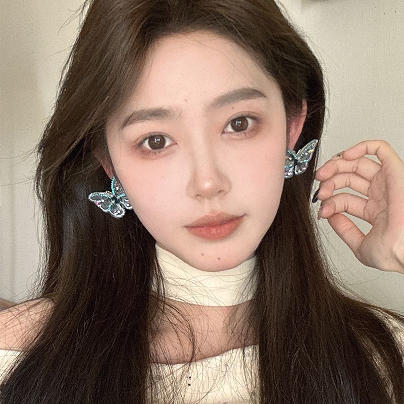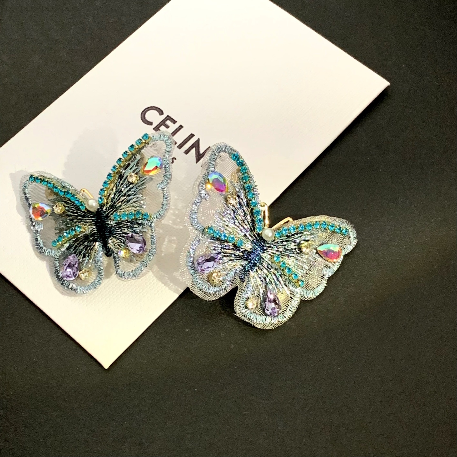 蝴蝶精灵刺绣蕾丝耳环女精致独特高级感彩色水晶耳坠气质优雅耳饰