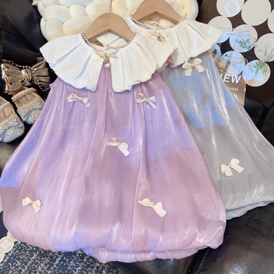 2025宝宝miu系连衣裙洋气暮云纱蝴蝶结无袖公主裙