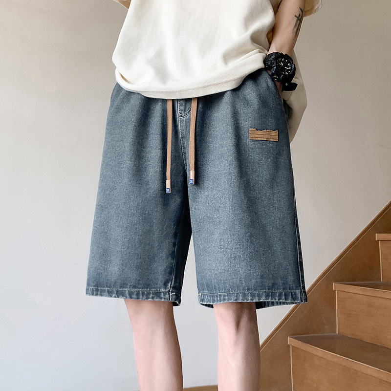 牛仔短裤男士夏季薄款美式复古潮牌直筒宽松青少年休闲五分中裤子
