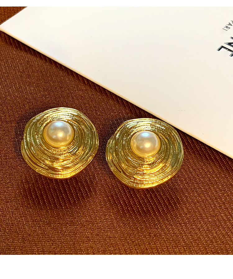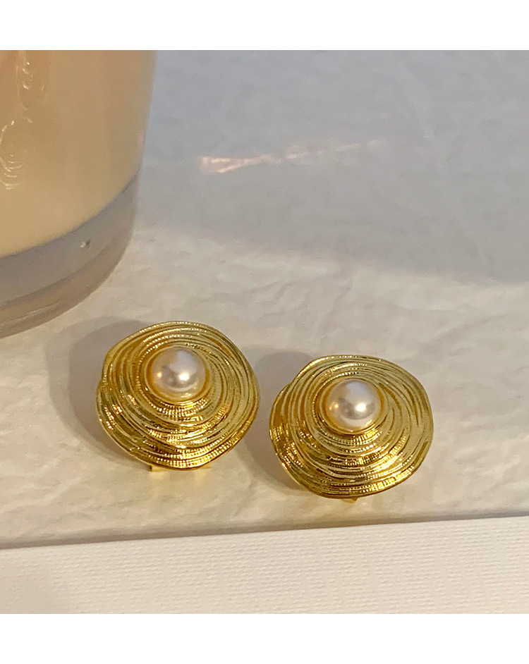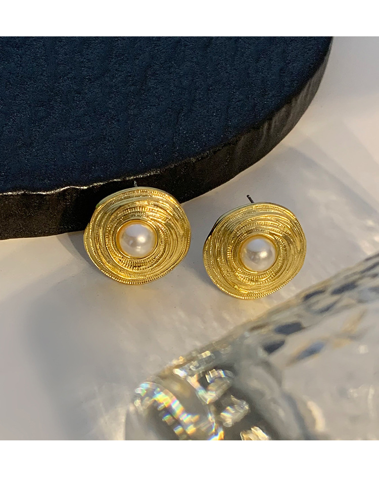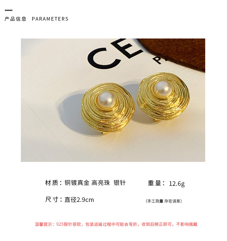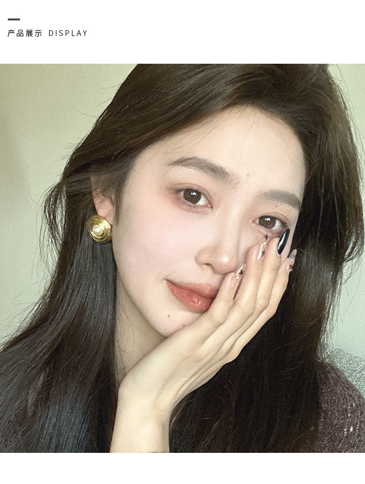 法式复古气质珍珠耳钉轻奢高级感金属圆形耳环小众设计小香风耳饰