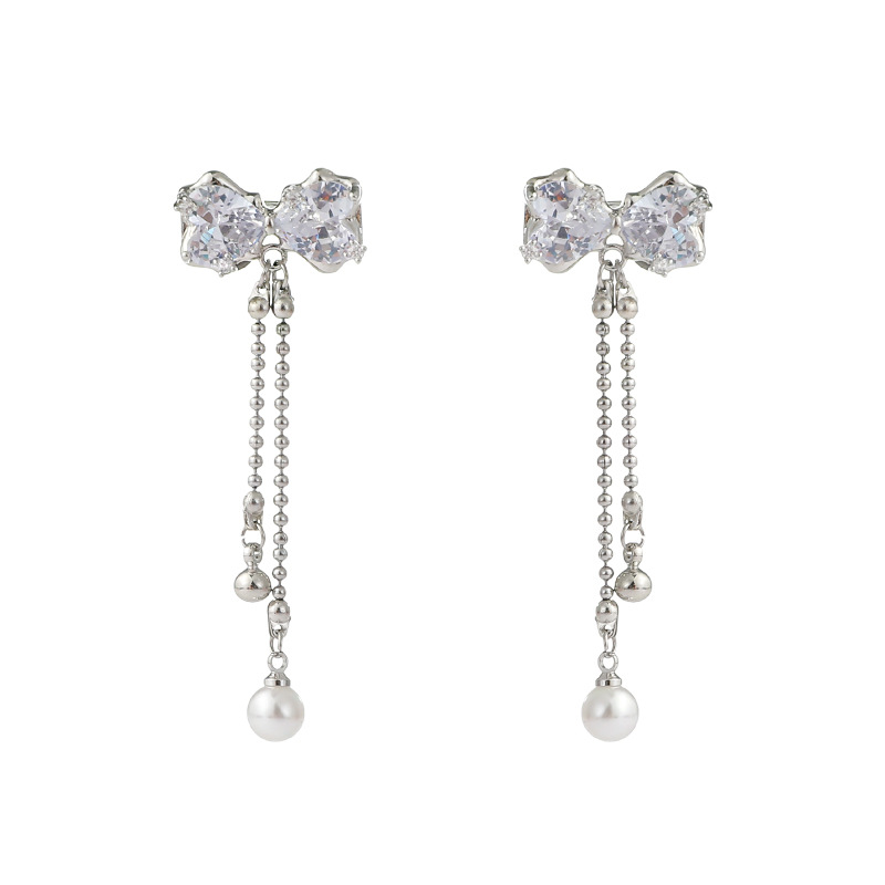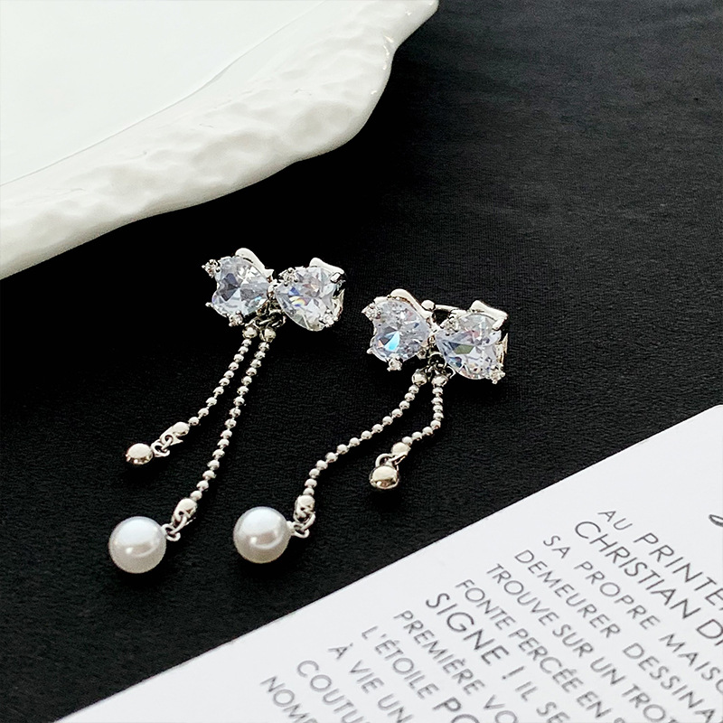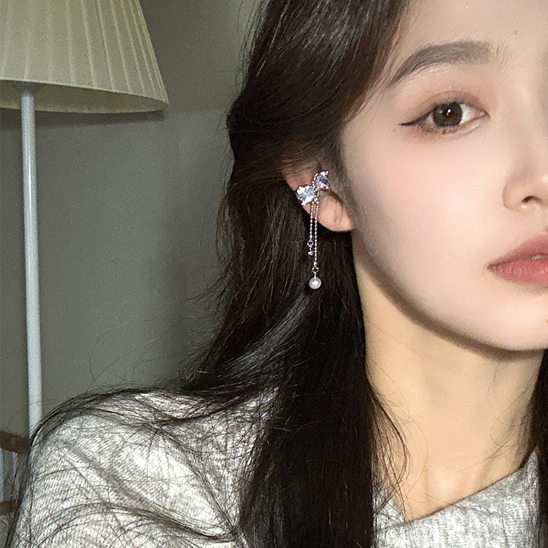 蝴蝶结锆石流苏无耳洞耳夹女轻奢小众设计耳饰高级耳骨夹耳饰