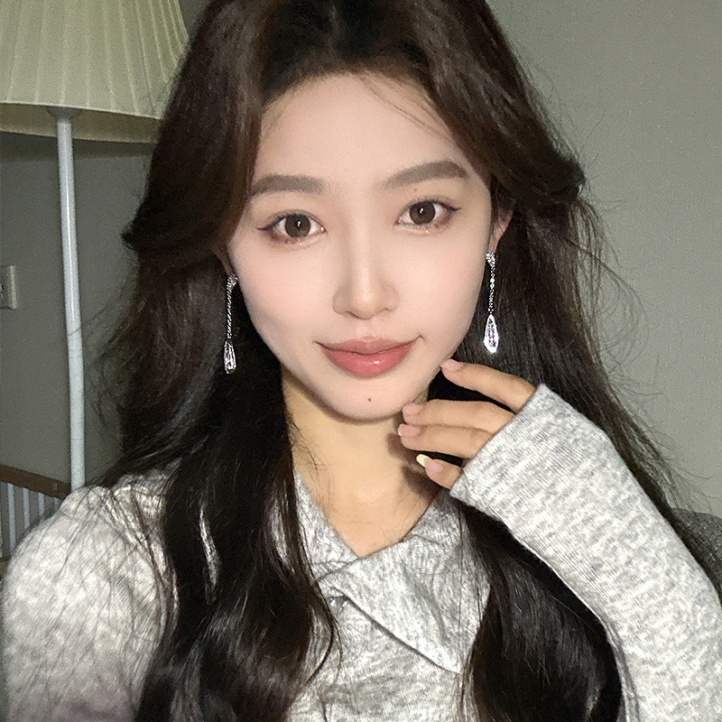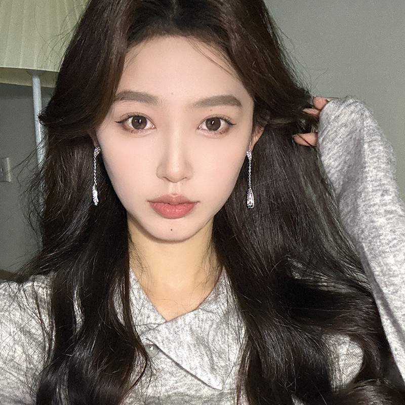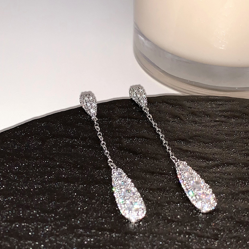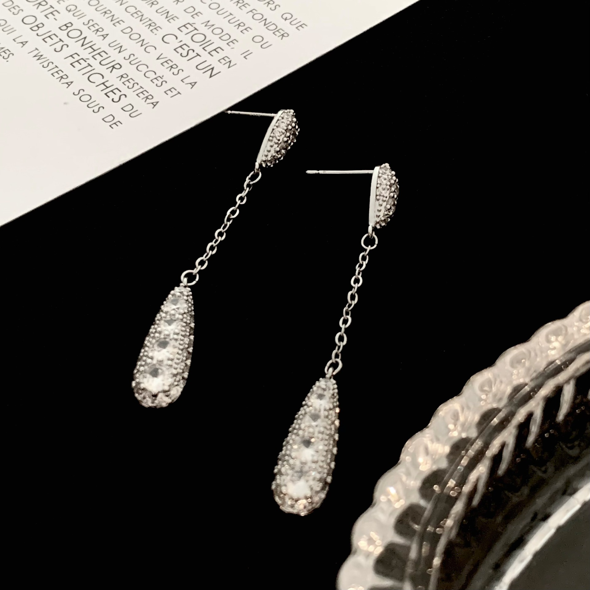 气质超闪锆石水滴吊坠长款耳环女小众高级感耳钉新款耳饰潮