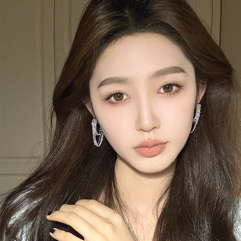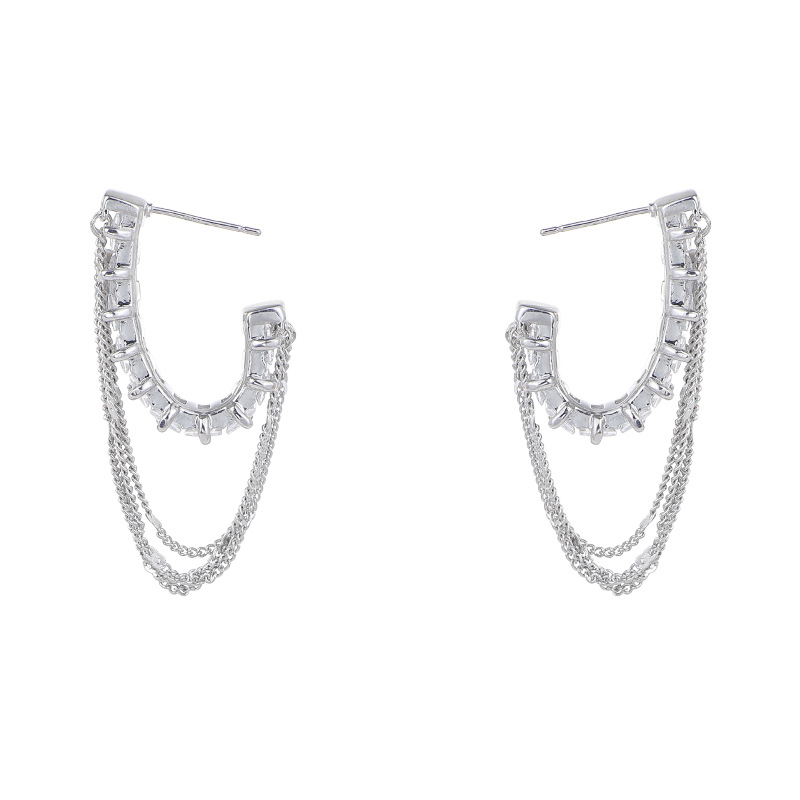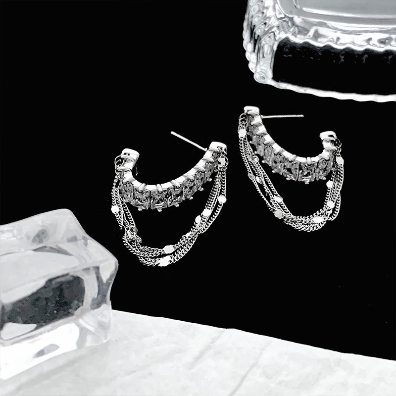 轻奢高级感C形链条流苏锆石耳圈独特小众设计感耳环气质夸张耳饰