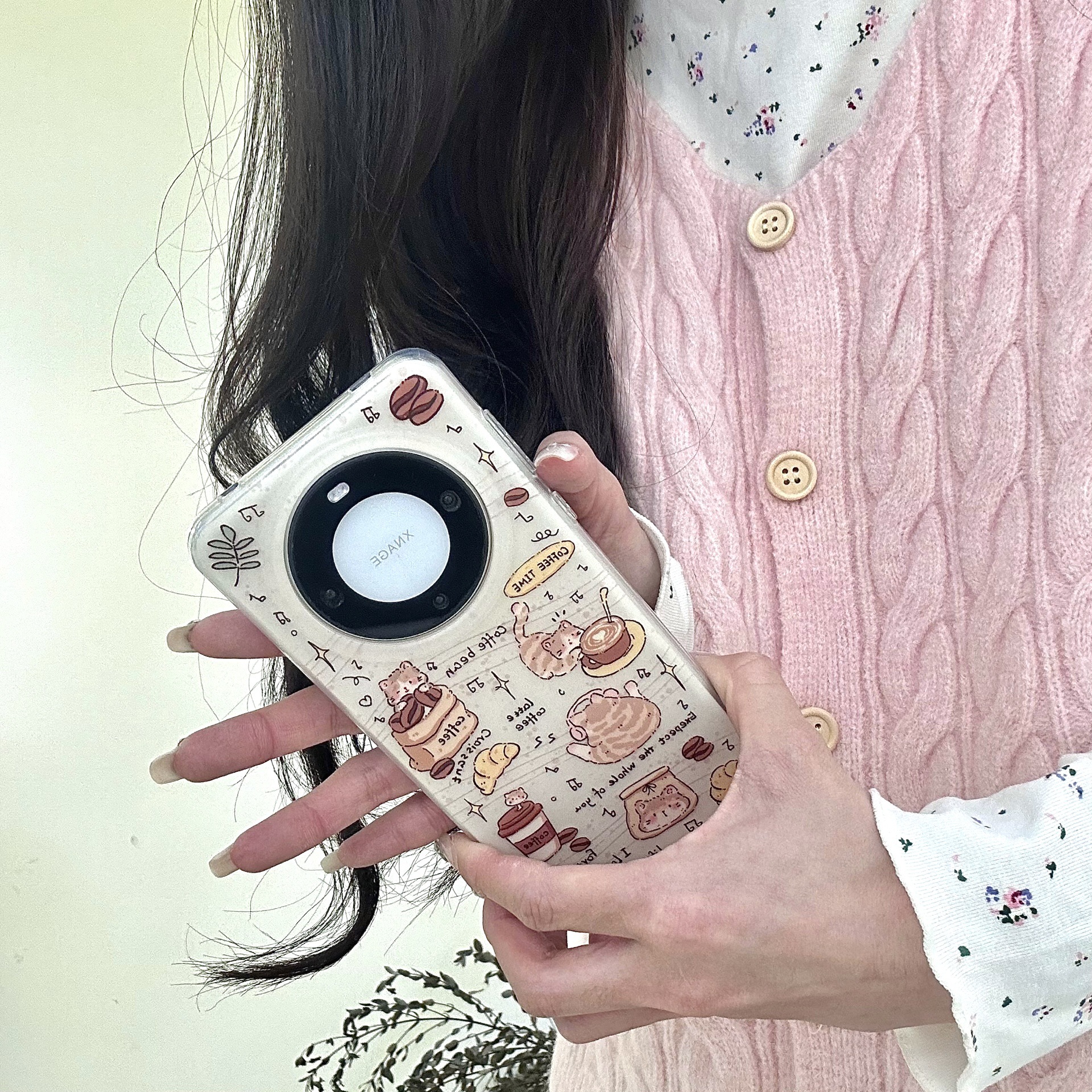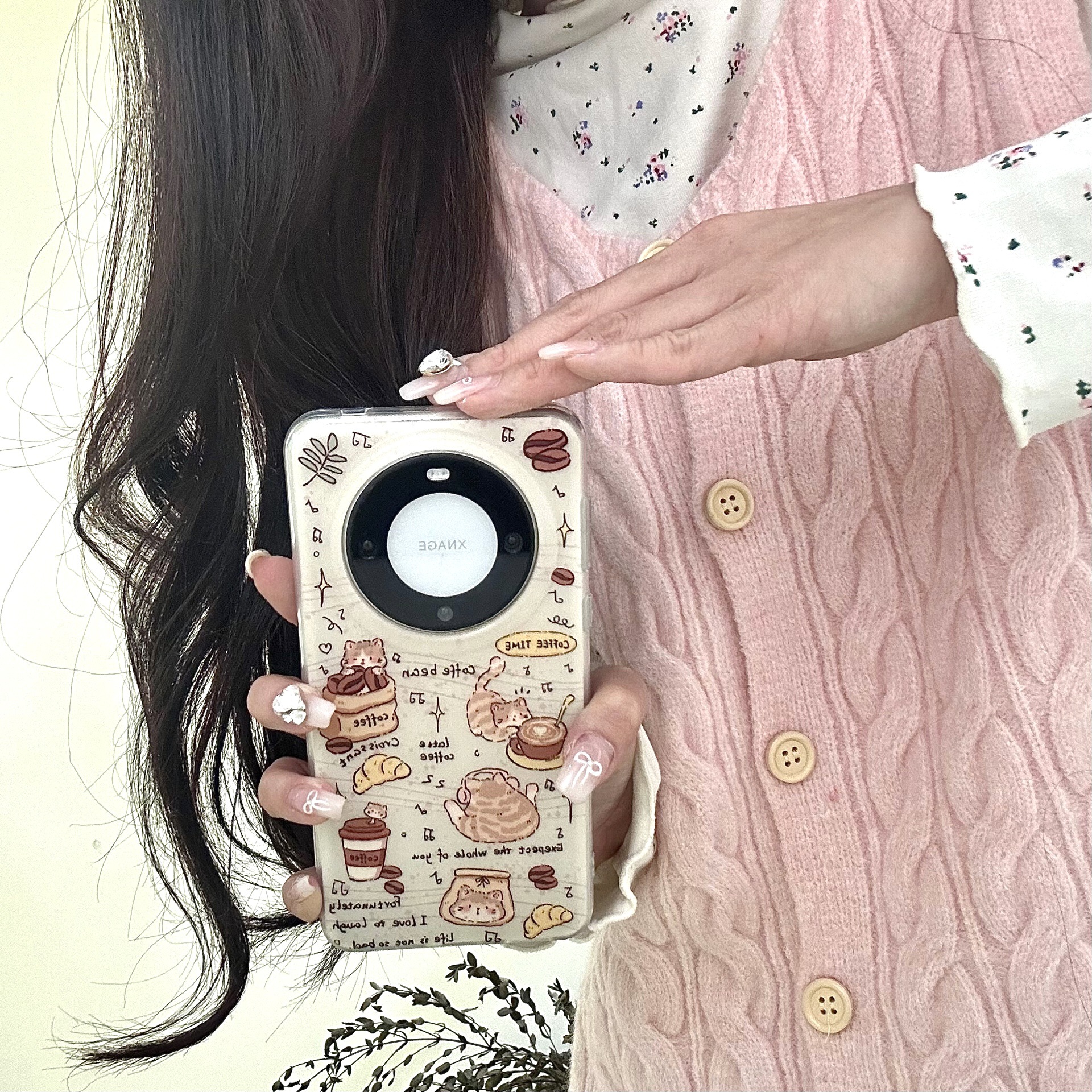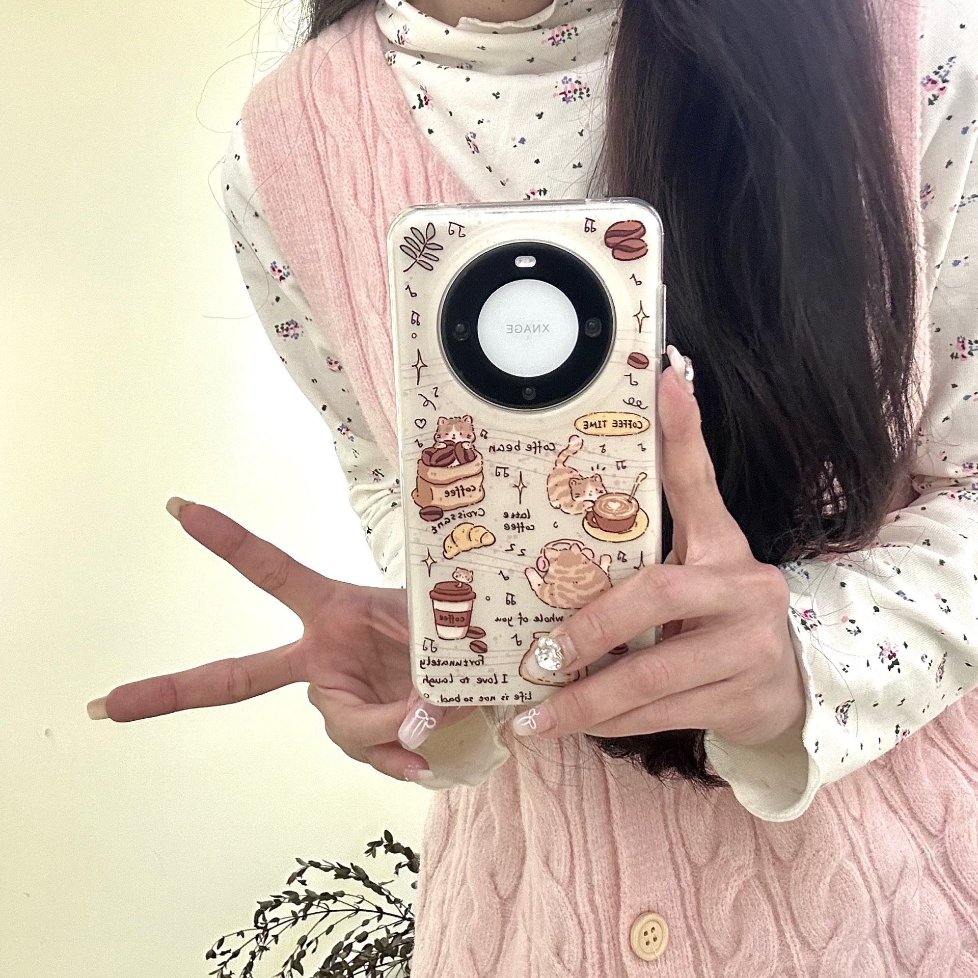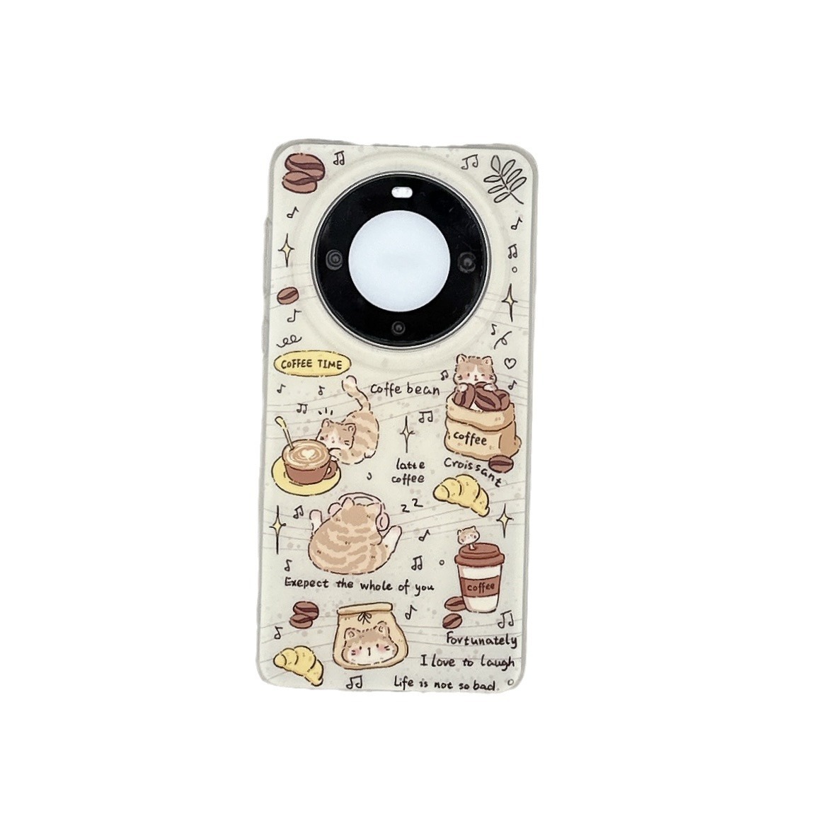 电镀双层印花咖啡豆猫咪适用华为Mate60/50Pro手机壳Mate40防摔女