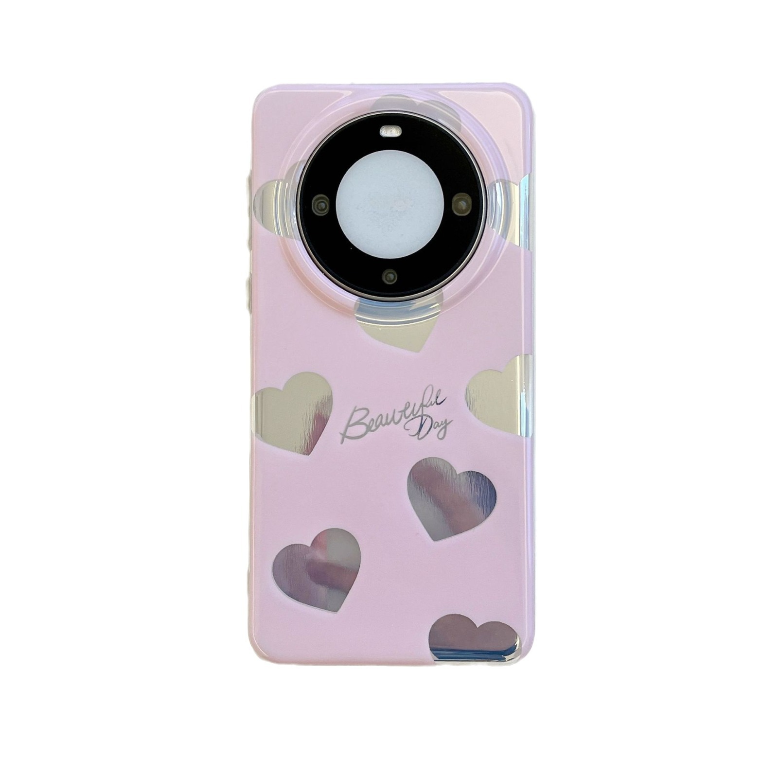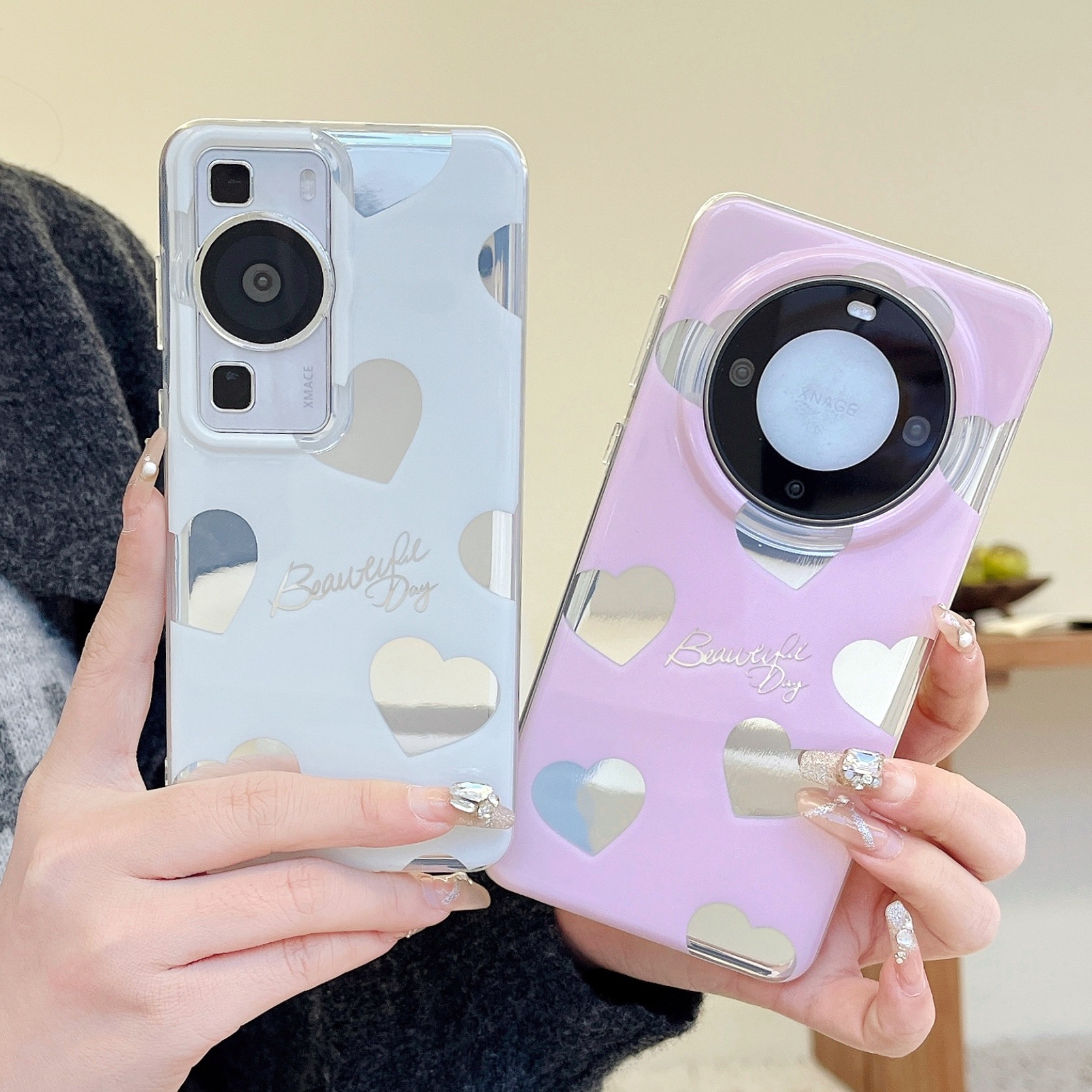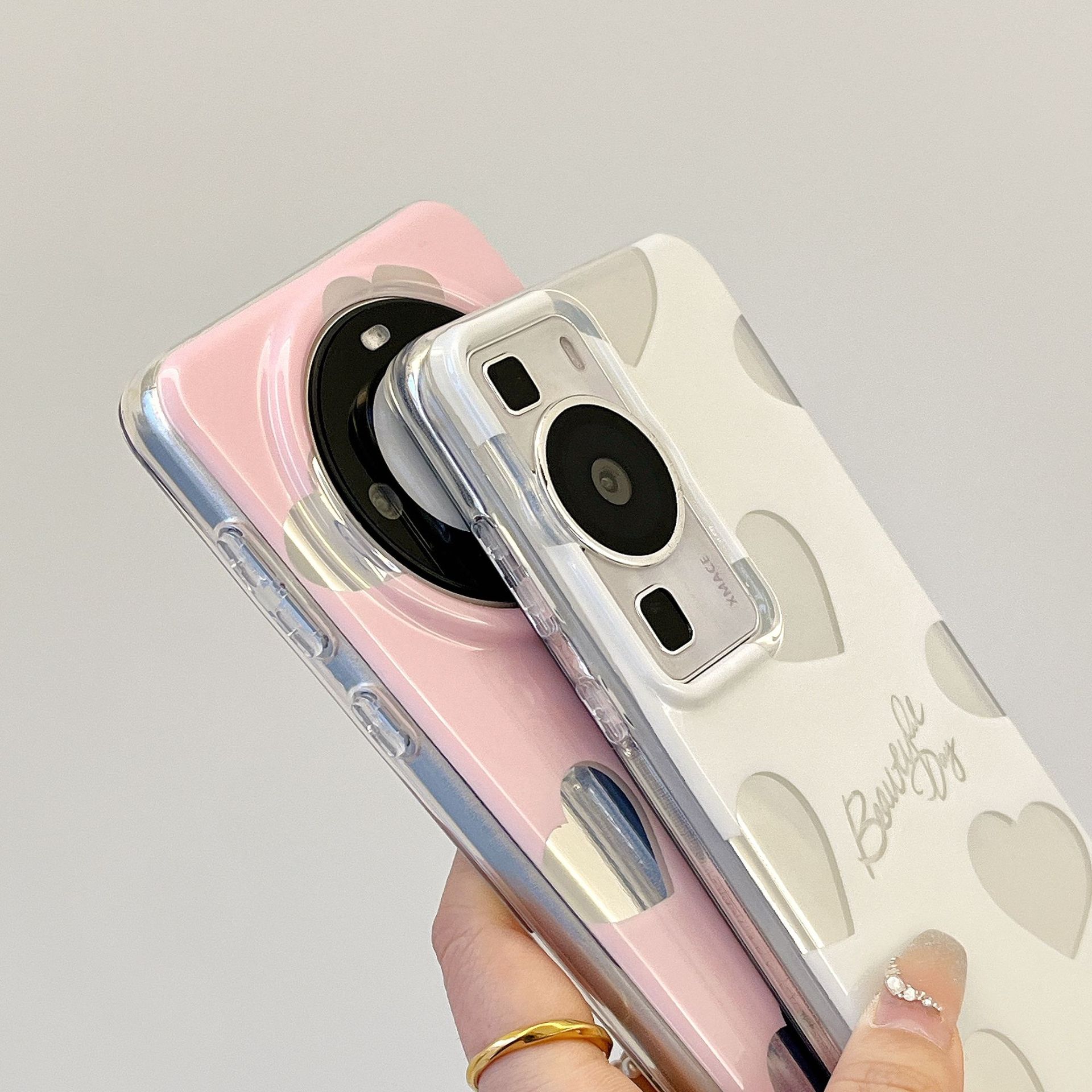 粉底个性镂空爱心适用华为mate60/50pro手机壳双层IMD女P60防摔壳