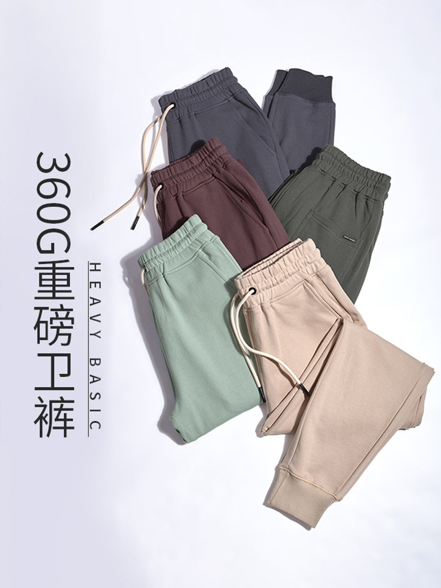 重磅纯棉欧美潮牌流美式复古日系运动束腿小脚收口抽绳休闲卫裤男