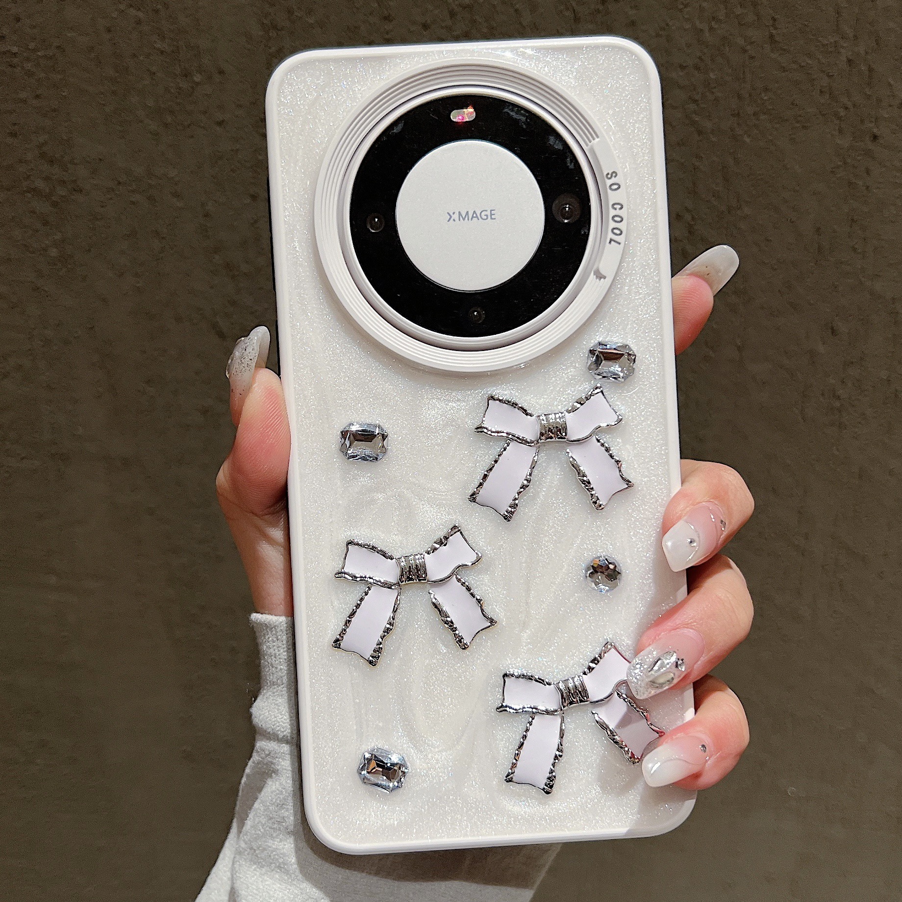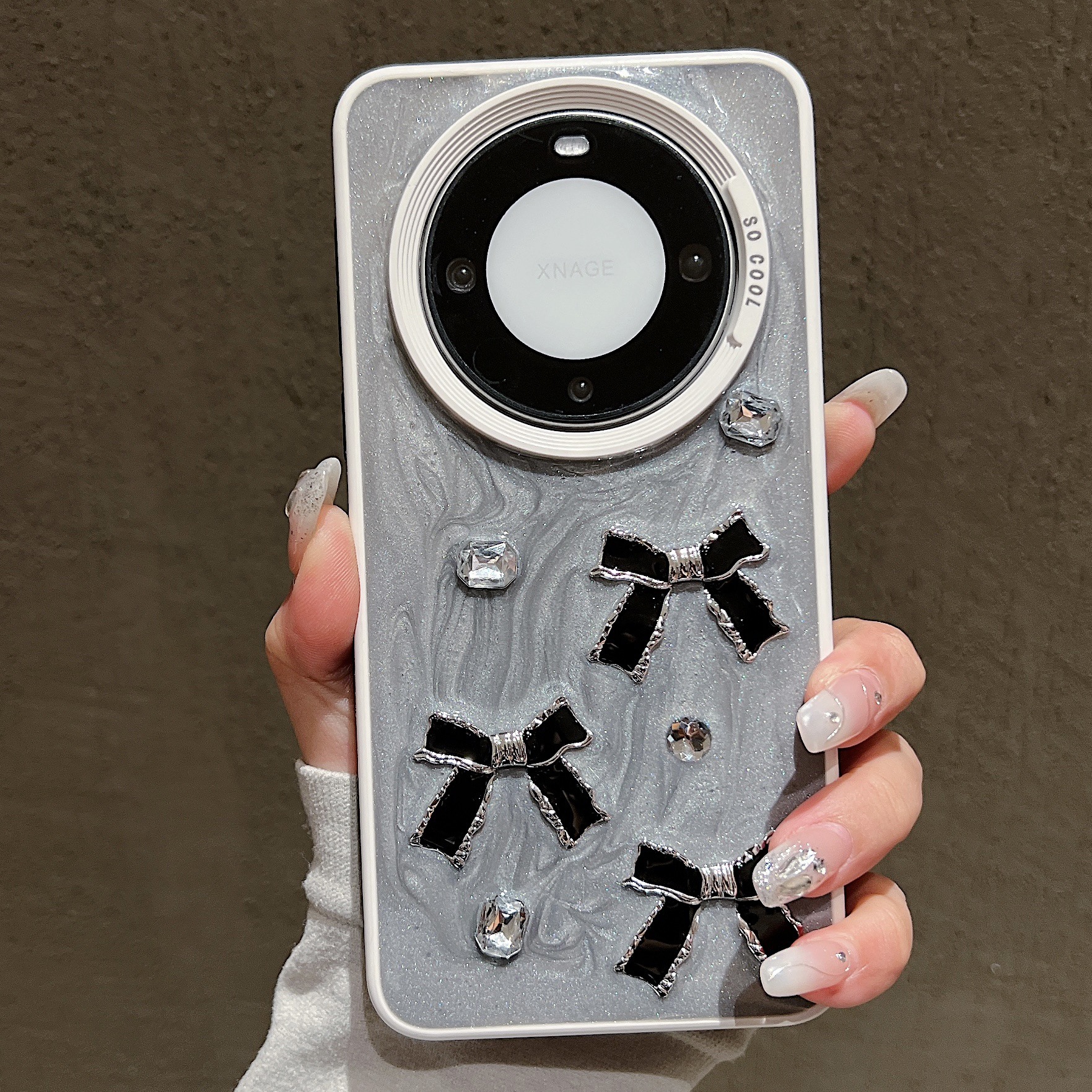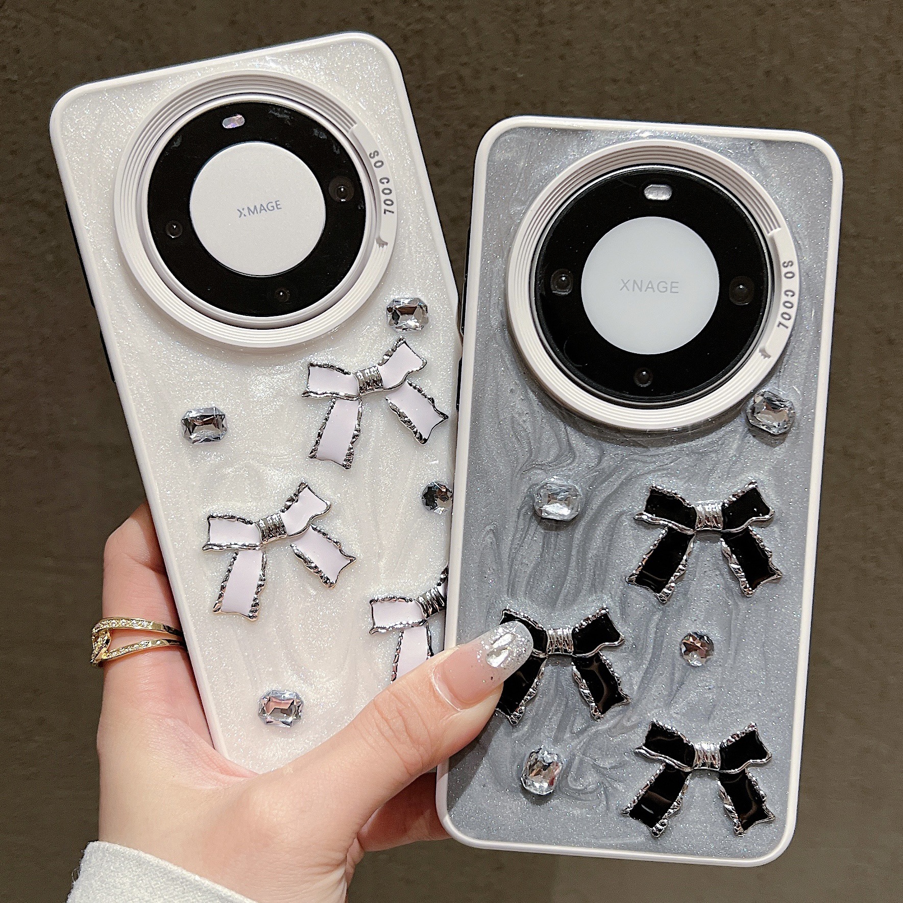 ins立体镶钻蝴蝶结适用华为Mate60Pro手机壳NOVA12滴胶荣耀90全包