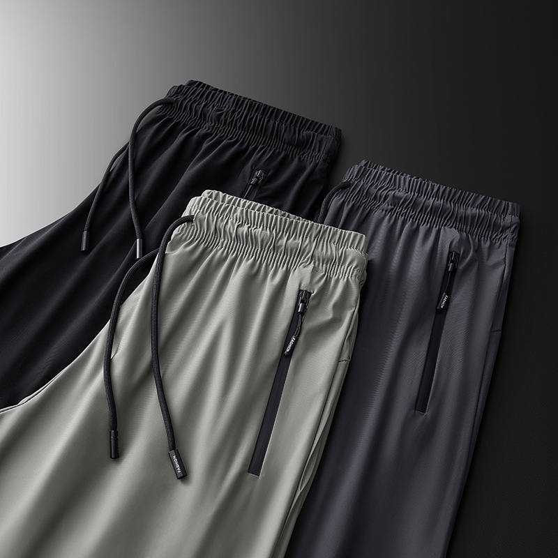 休闲裤男裤薄款夏季速干冰丝新款男士大码直筒运动长裤子男装