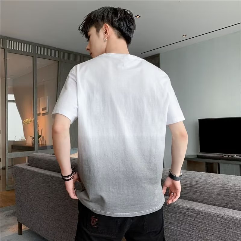 夏季男士渐变色短袖男休闲青少年圆领t恤韩版潮流男装体恤ins