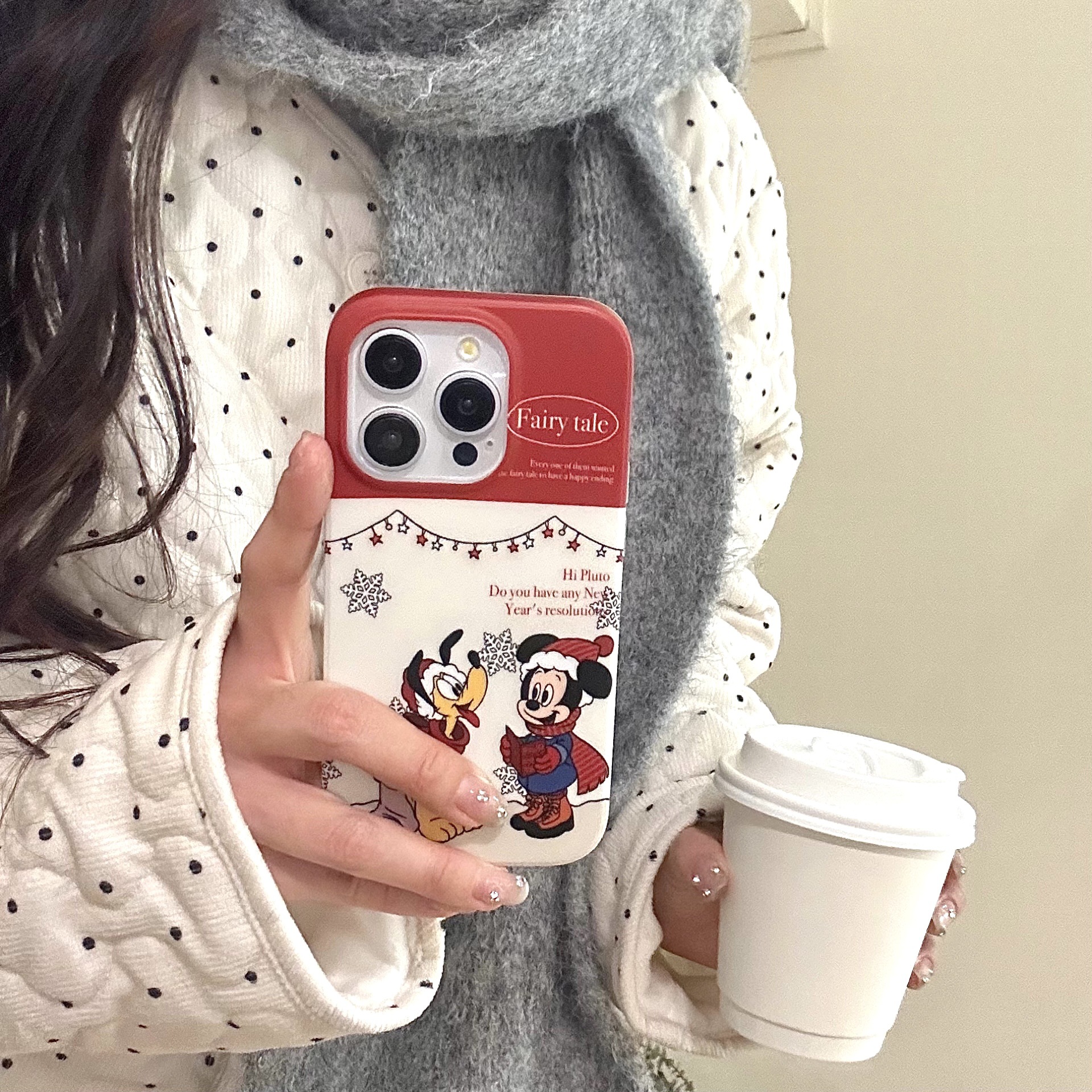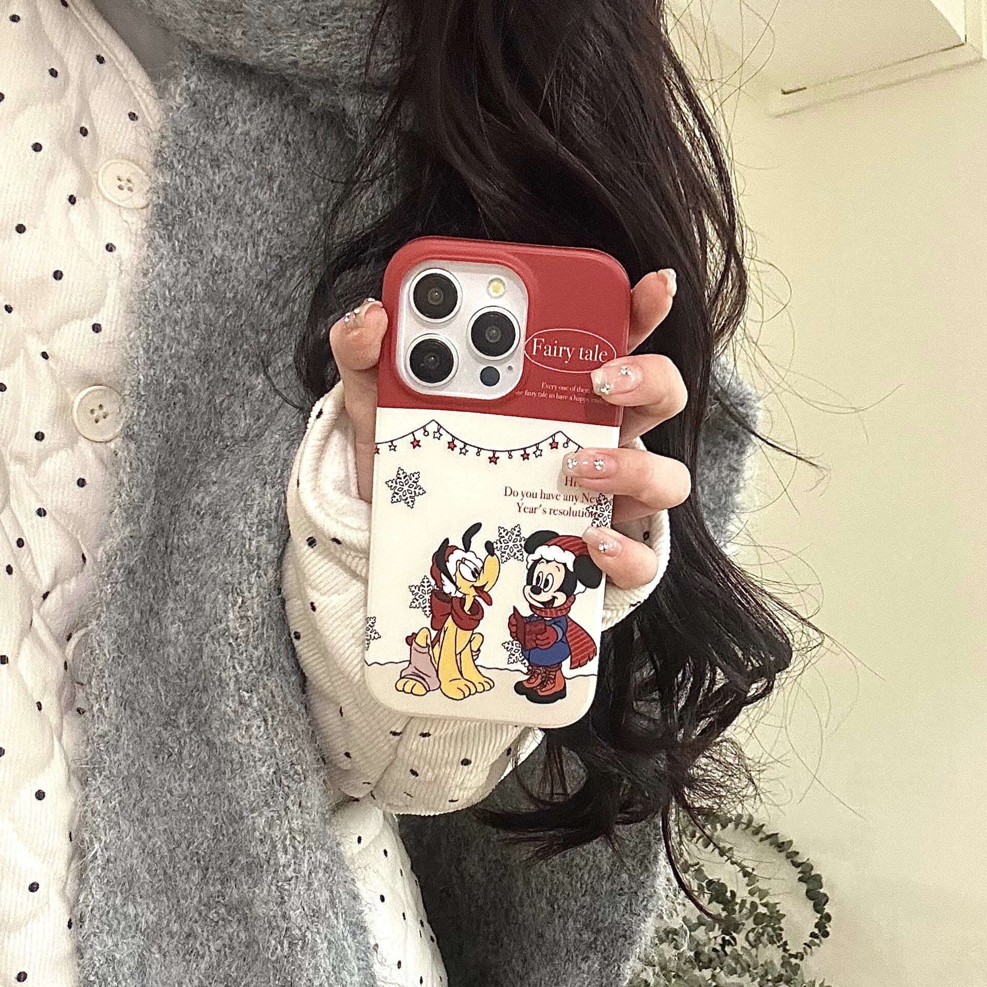 日韩ins圣诞帽米老鼠适用15/14Promax手机壳苹果13卡通12/11防摔