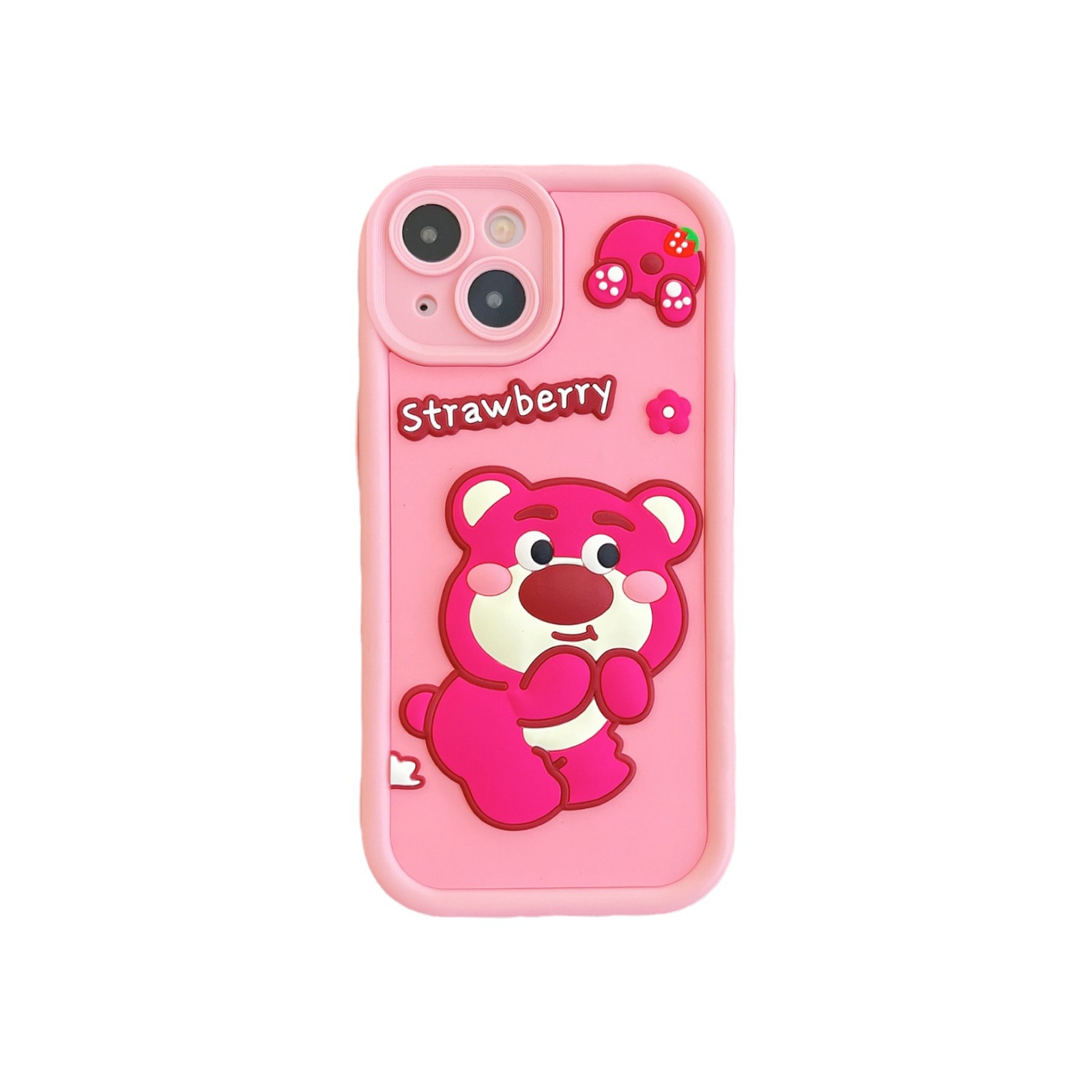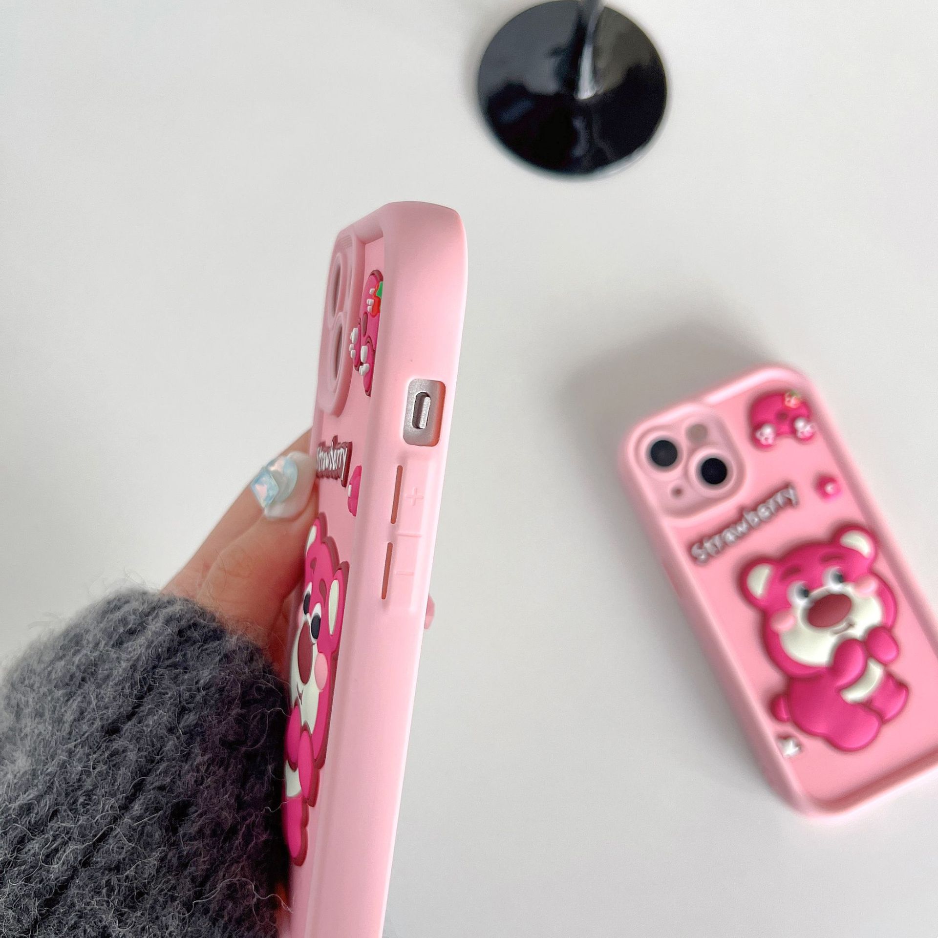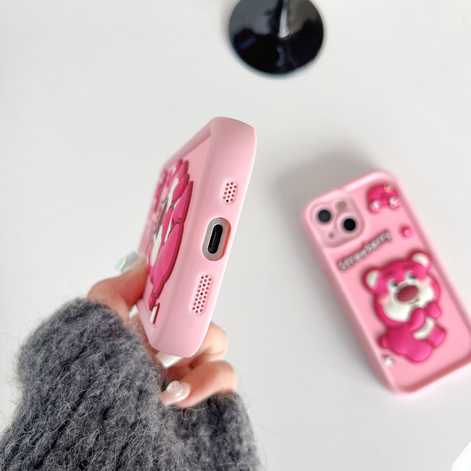 卡通可爱3D立体草莓熊适用15/14promax手机壳苹果13硅胶12/11防摔