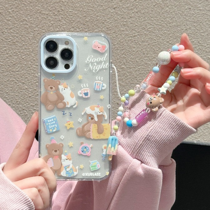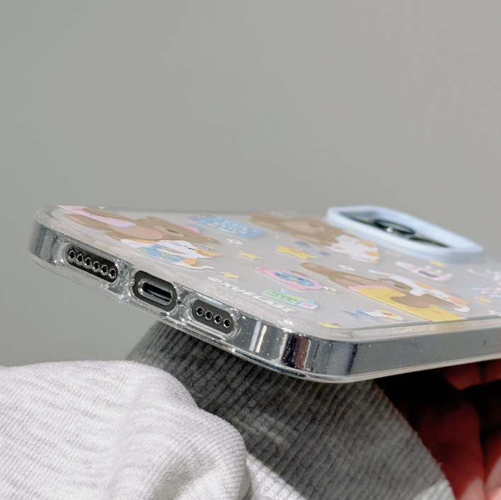 卡通闪粉小熊猫咪适用苹果15ProMax手机壳iPhone14/13可爱12防摔