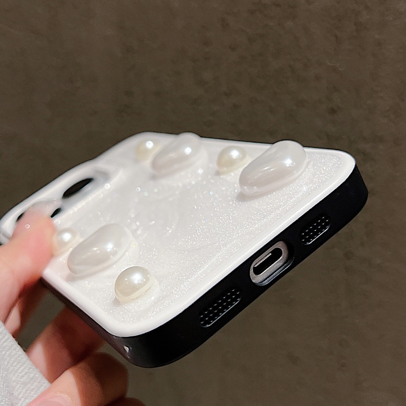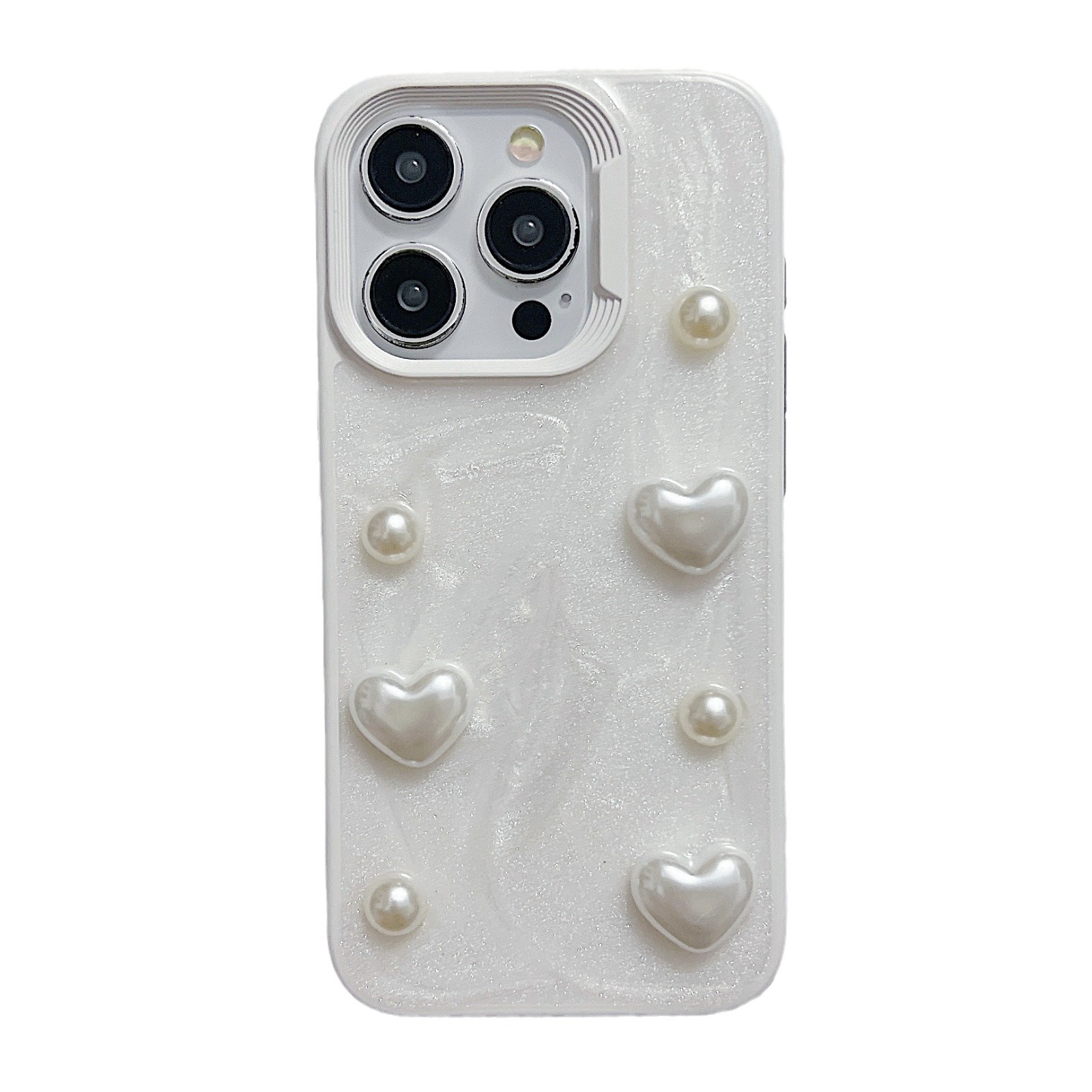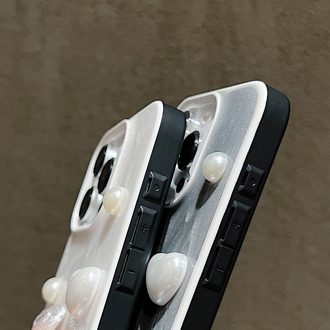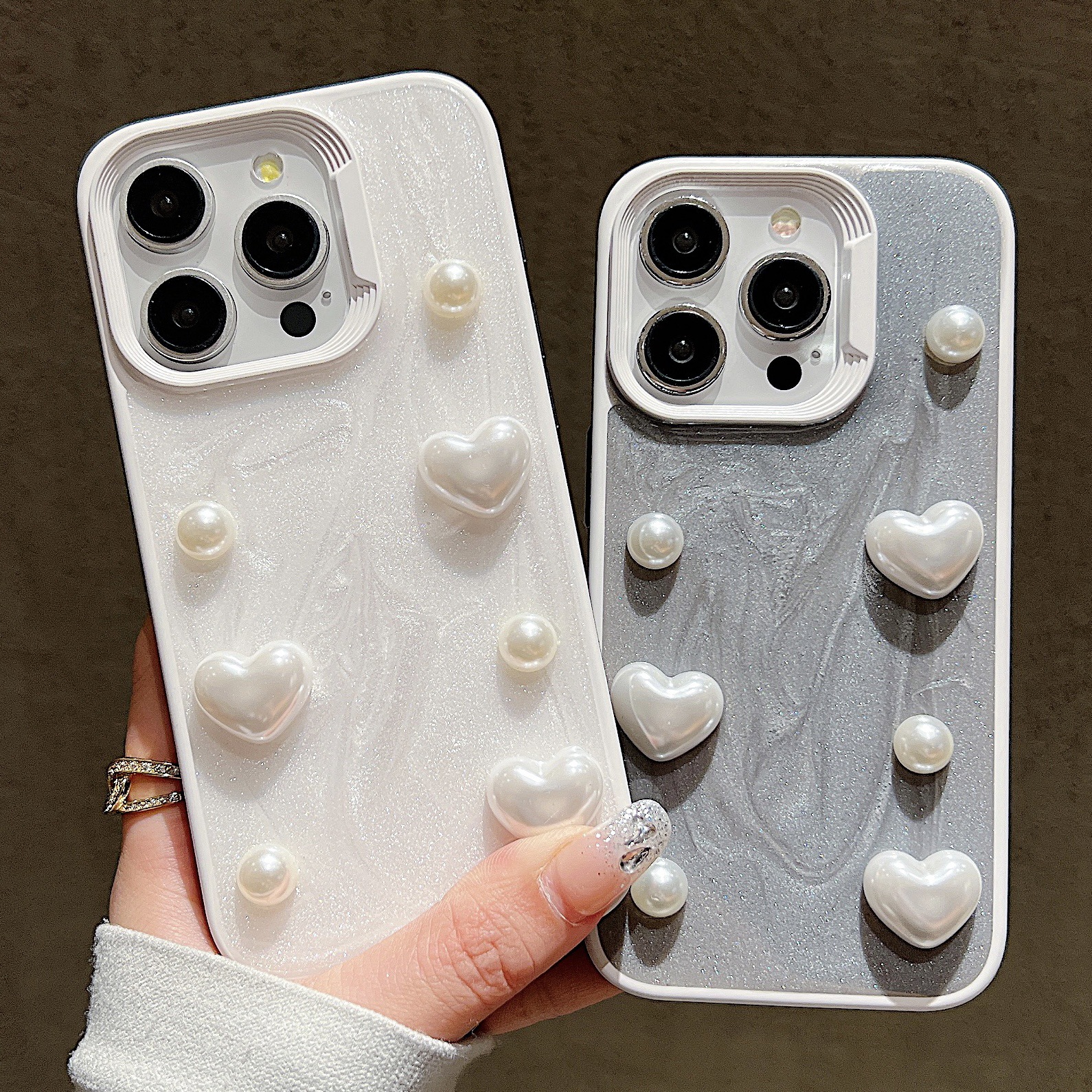ins立体珍珠爱心适用15Promax手机壳防摔14苹果13个性12/11滴胶壳