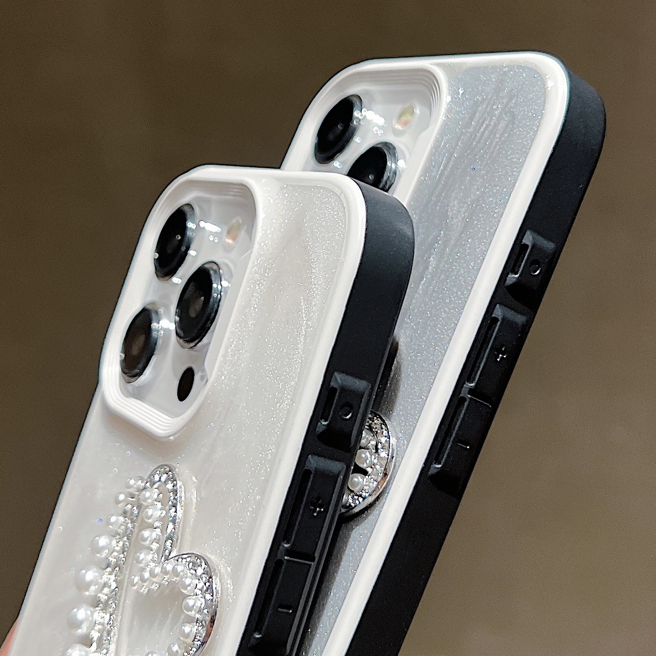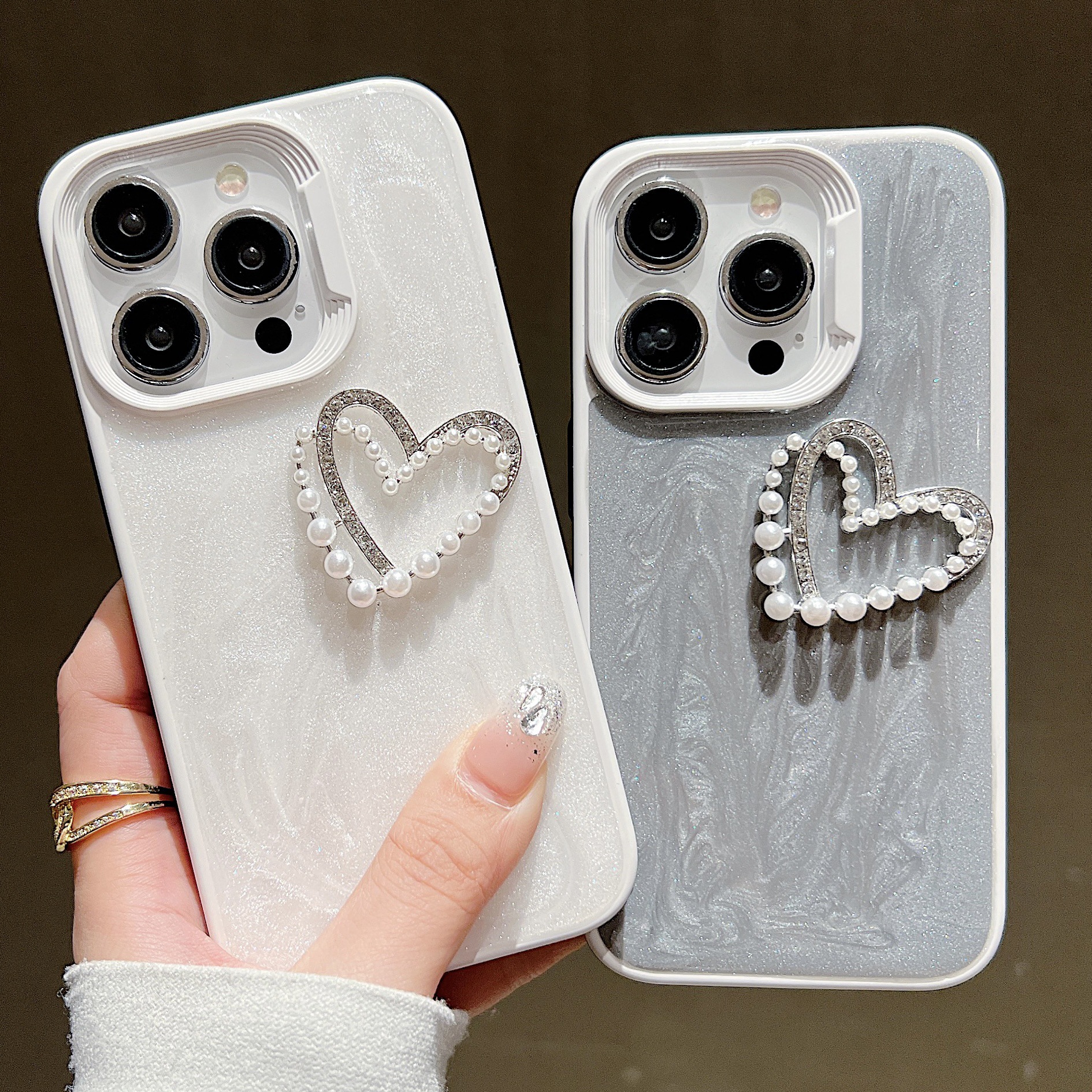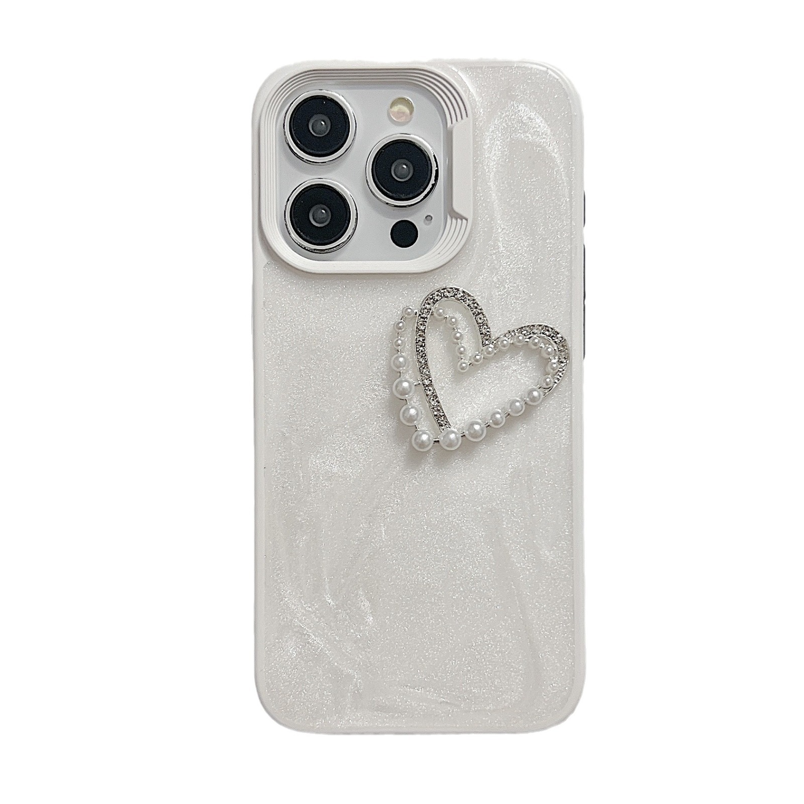 ins立体镶钻珍珠爱心适用15/14Promax手机壳苹果13防摔12/11滴胶