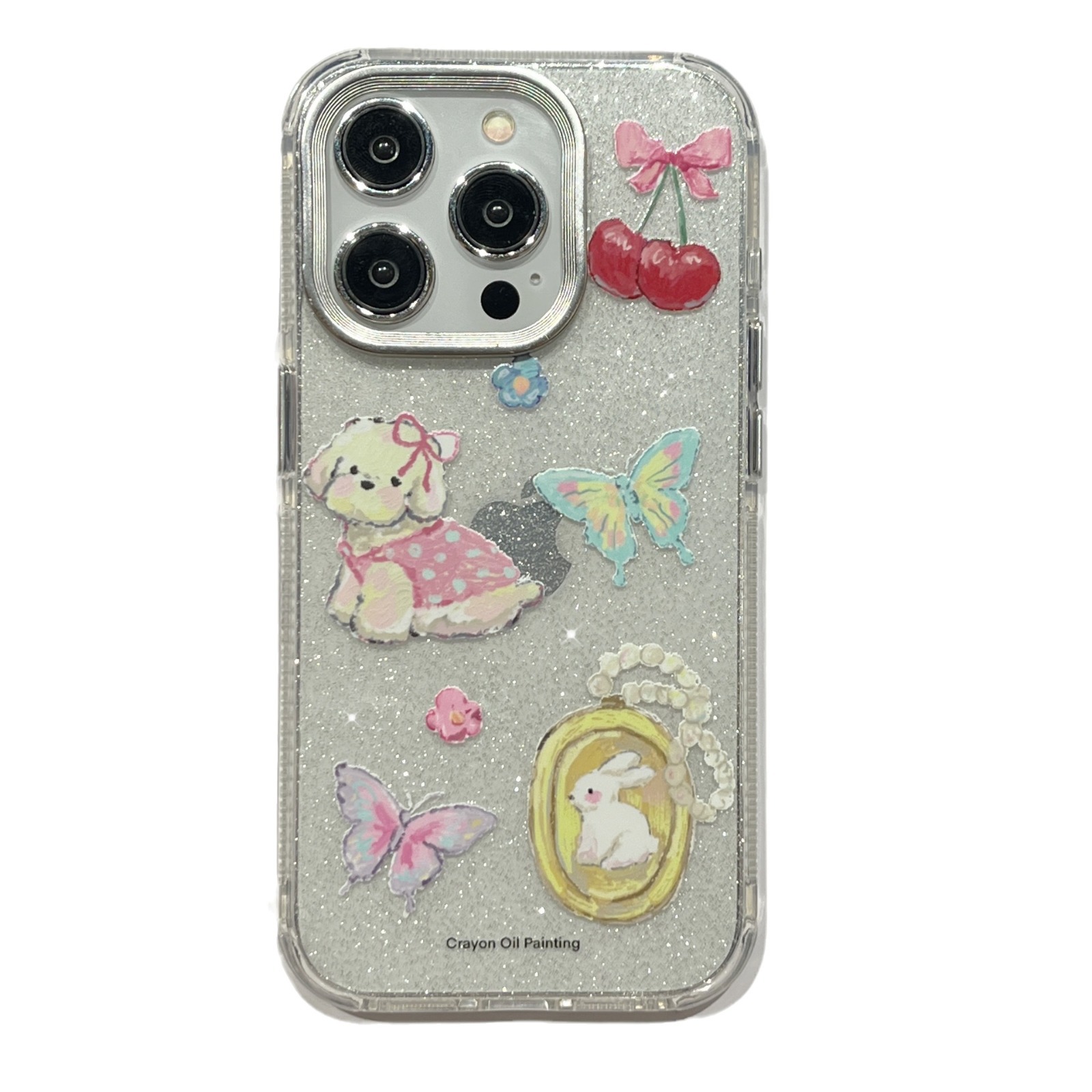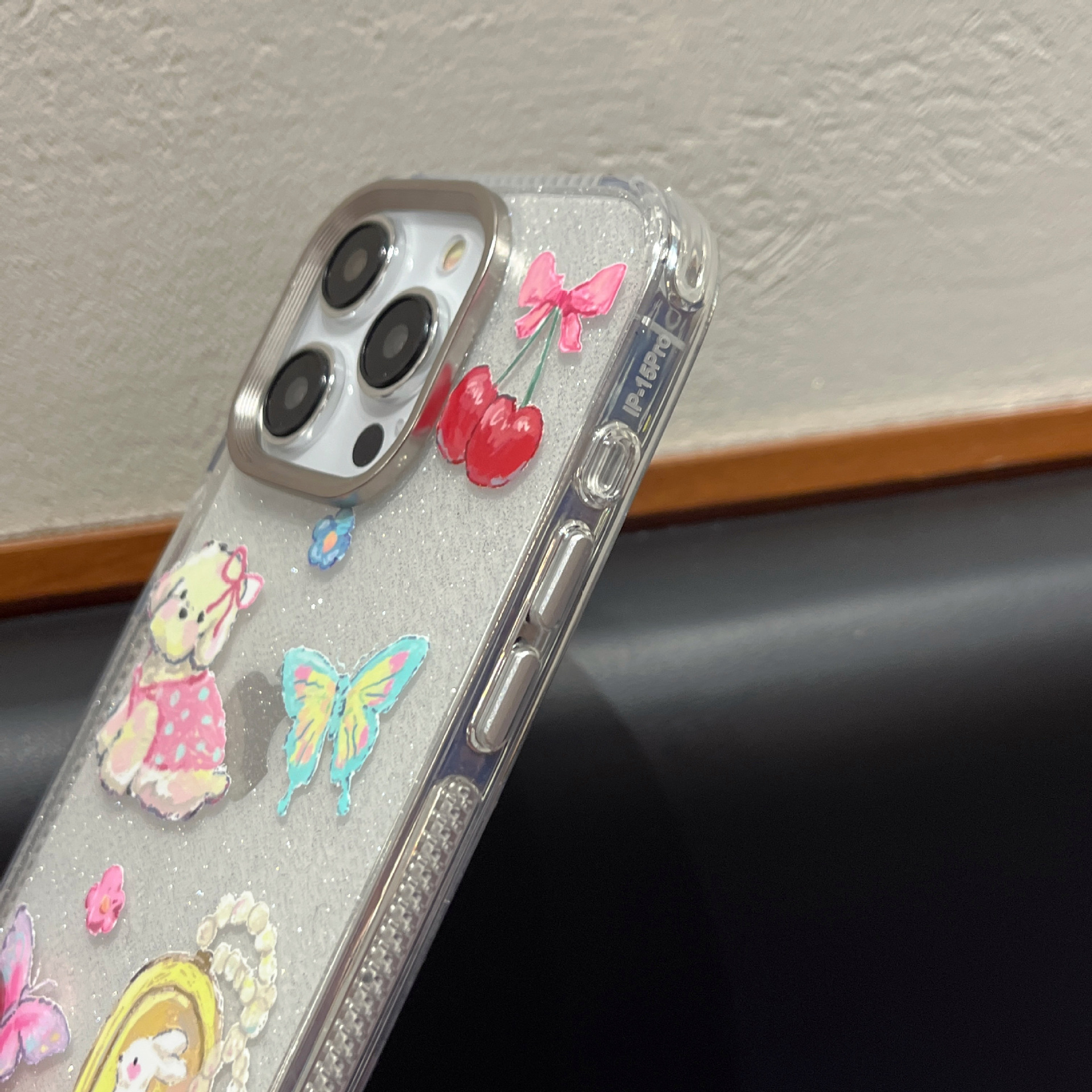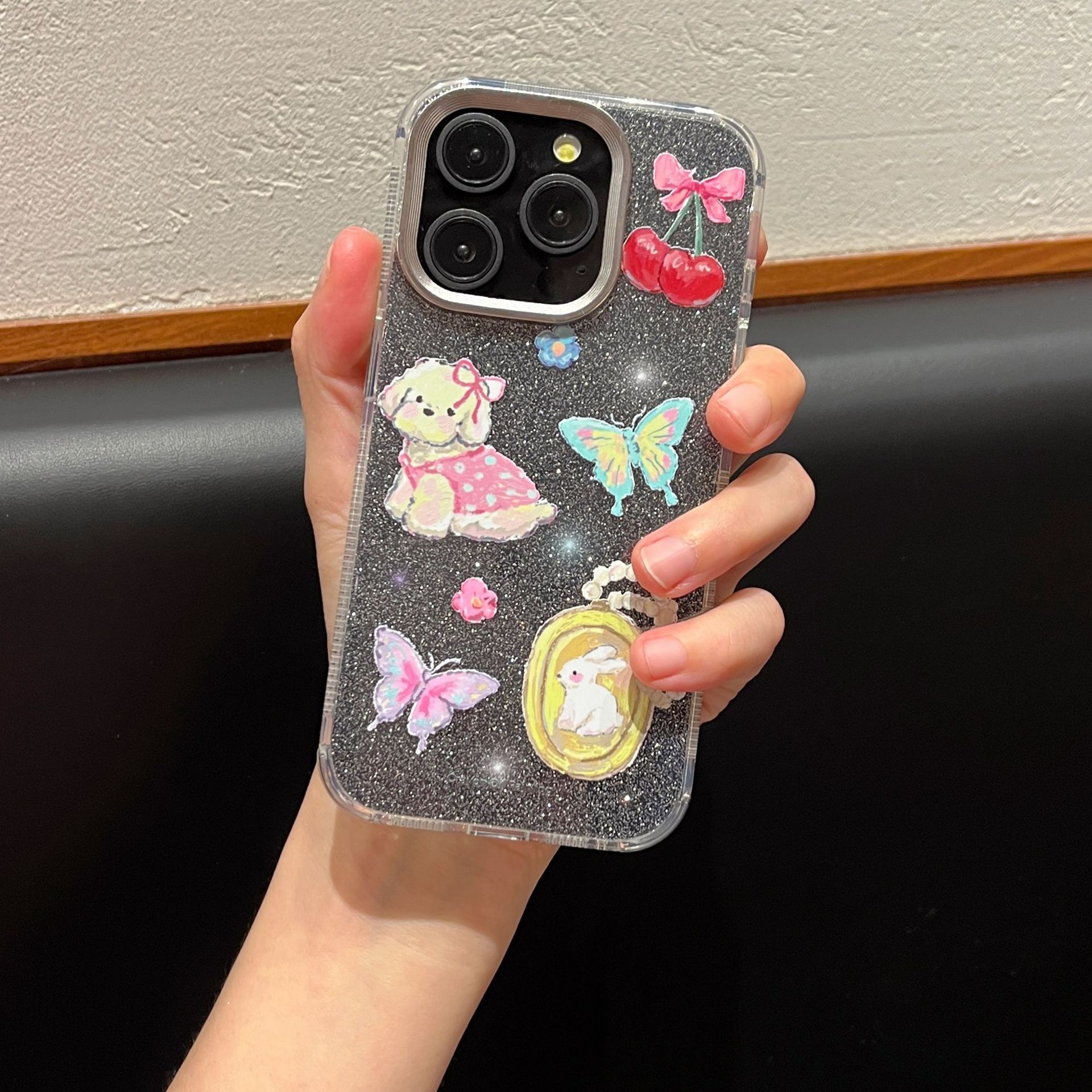 ins卡通蝴蝶狗狗适用15promax手机壳防摔14pro苹果13/12电镀闪粉