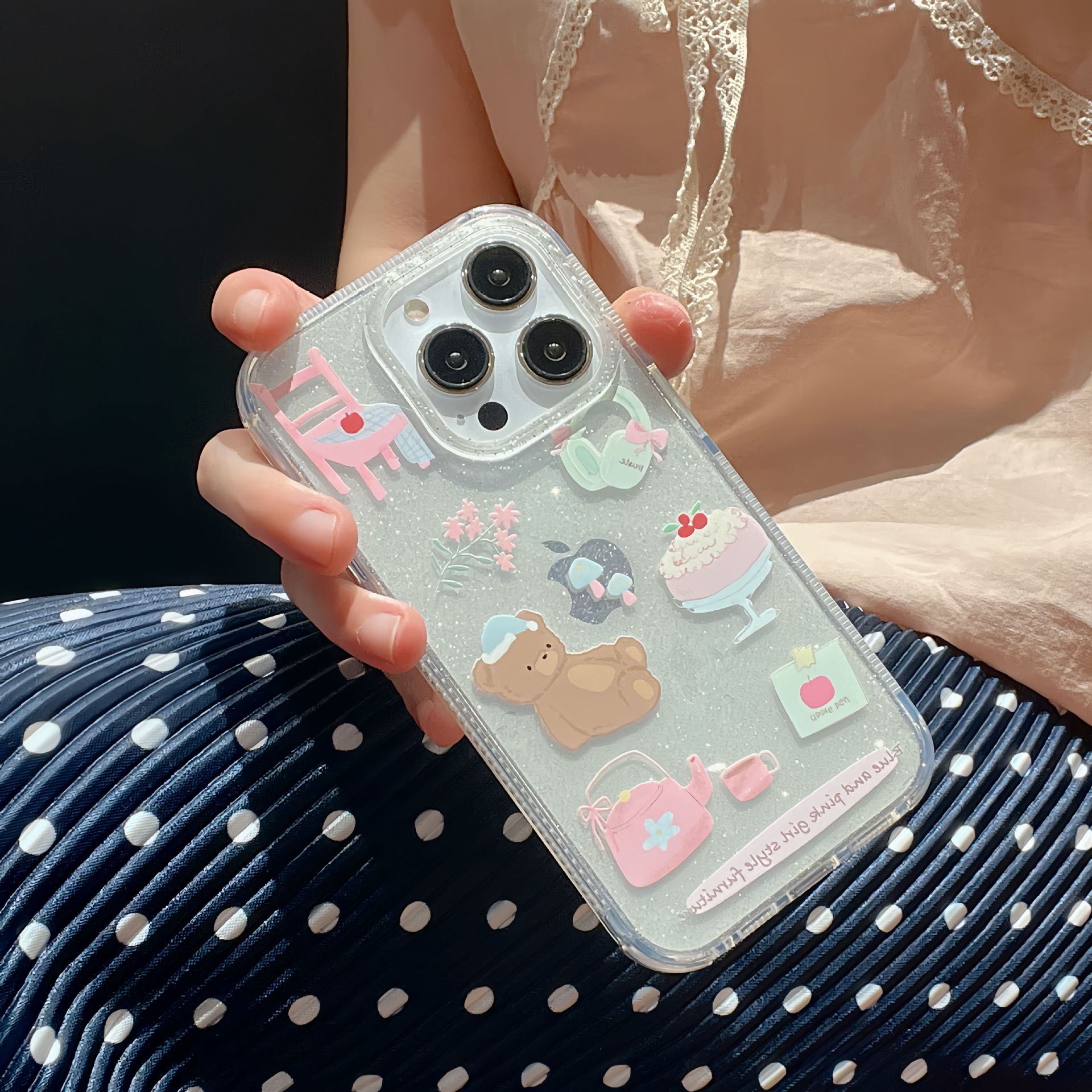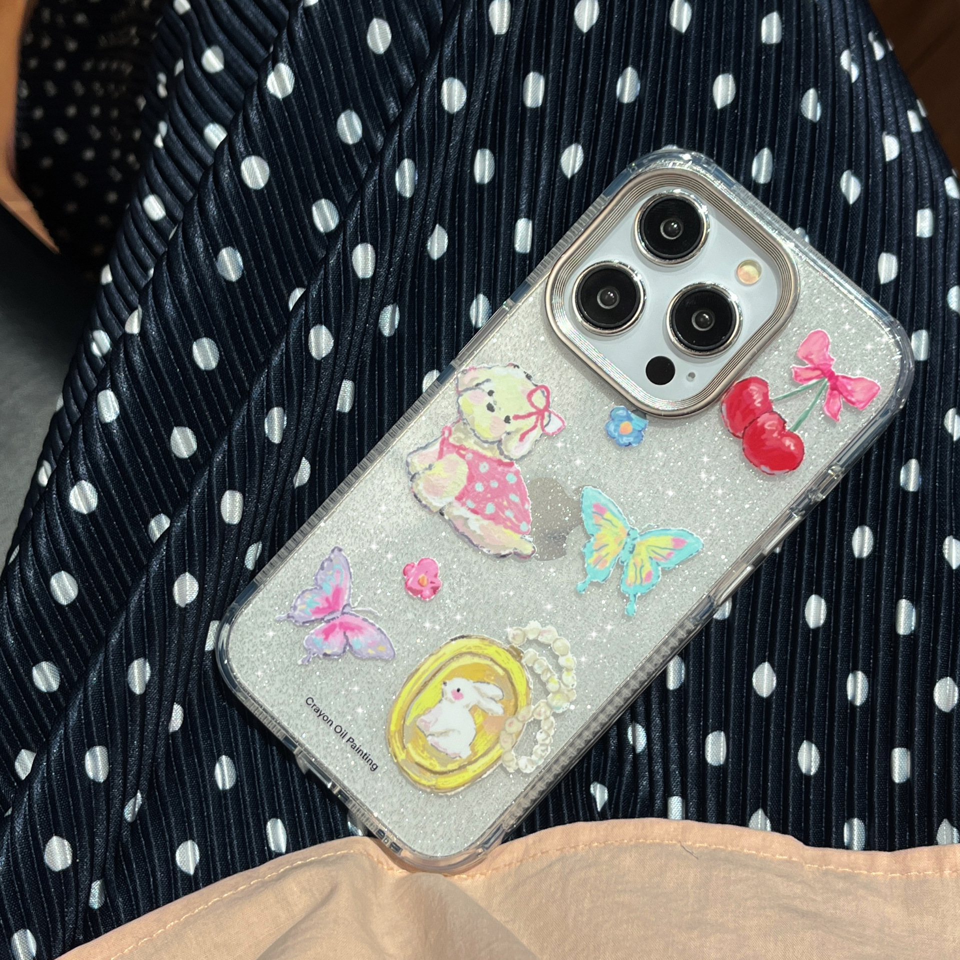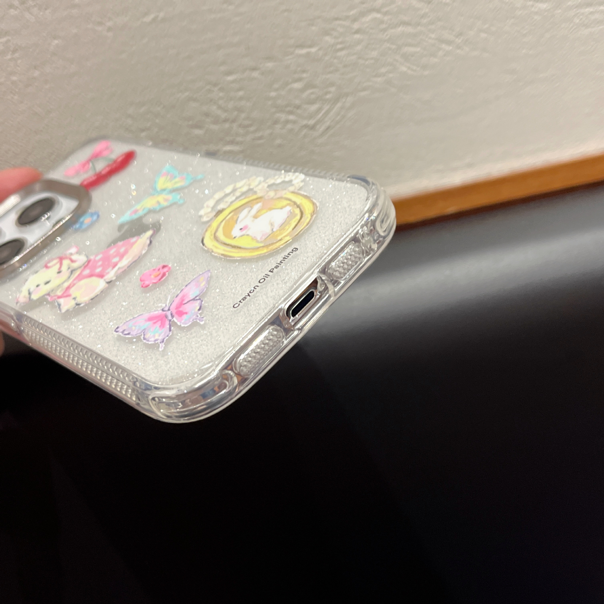 ins卡通蝴蝶狗狗适用15promax手机壳防摔14pro苹果13/12电镀闪粉