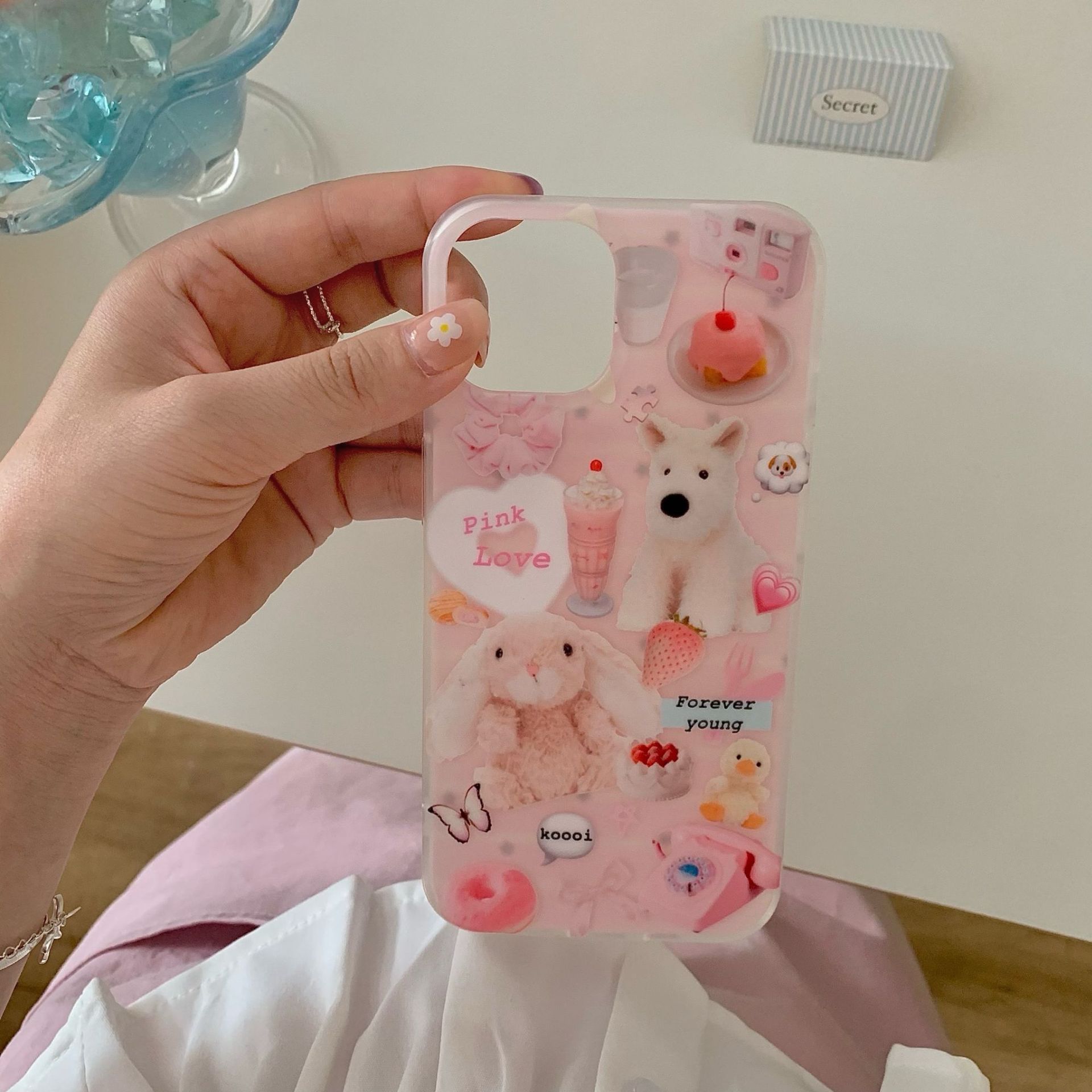 卡通ins磨砂动物贴图适用15Promax手机壳14pro苹果13双层12防摔女