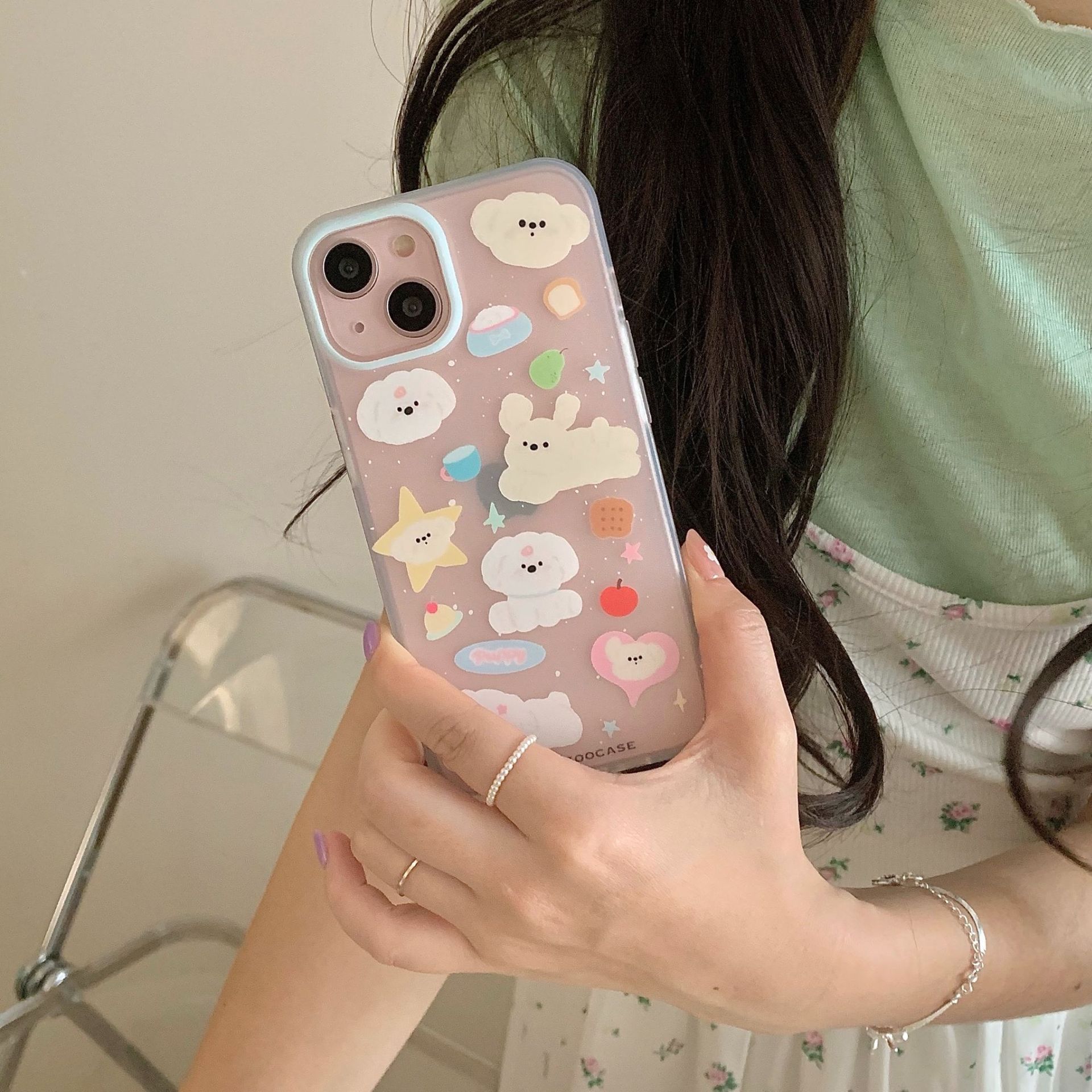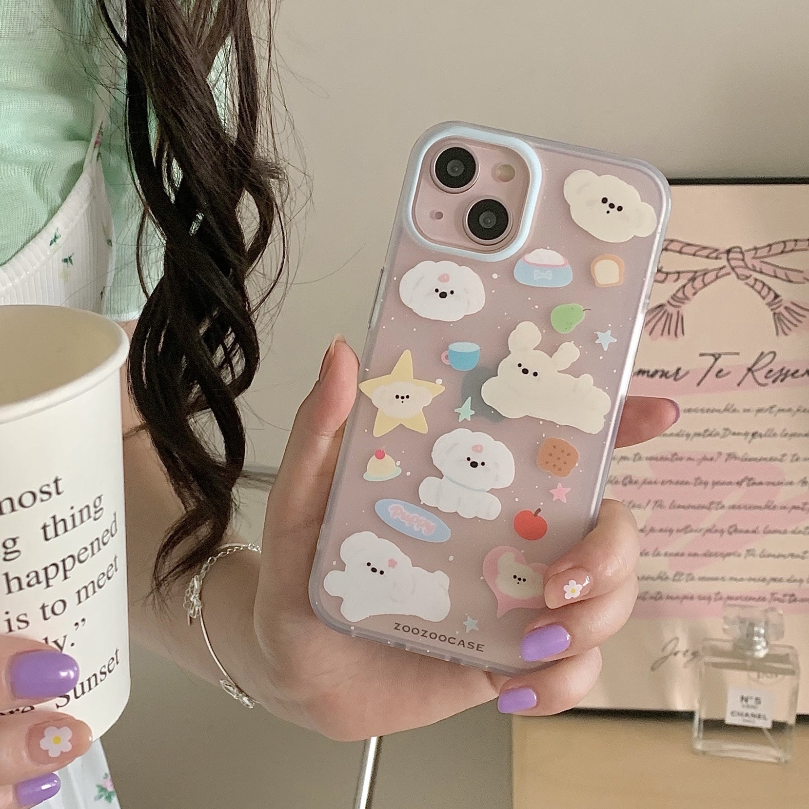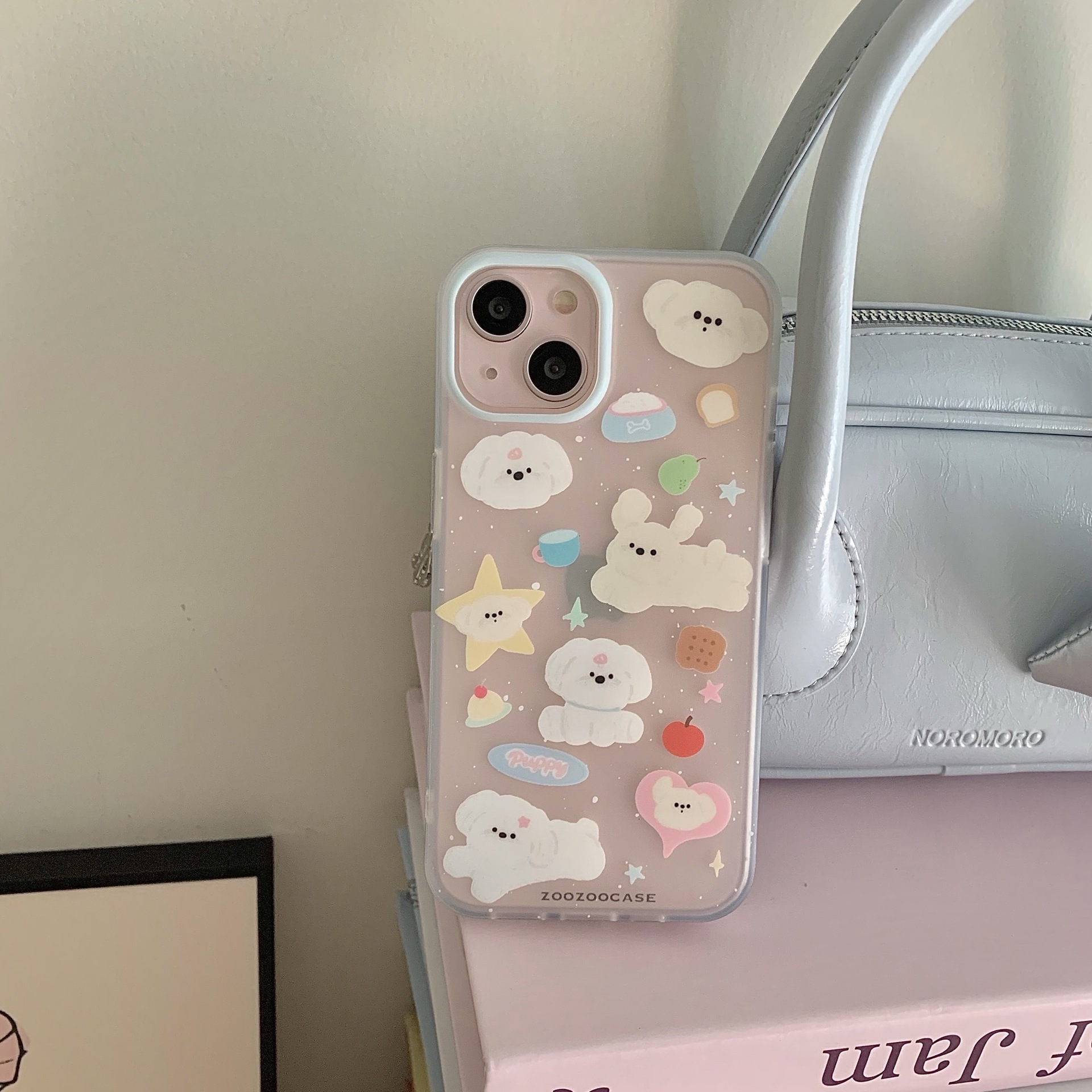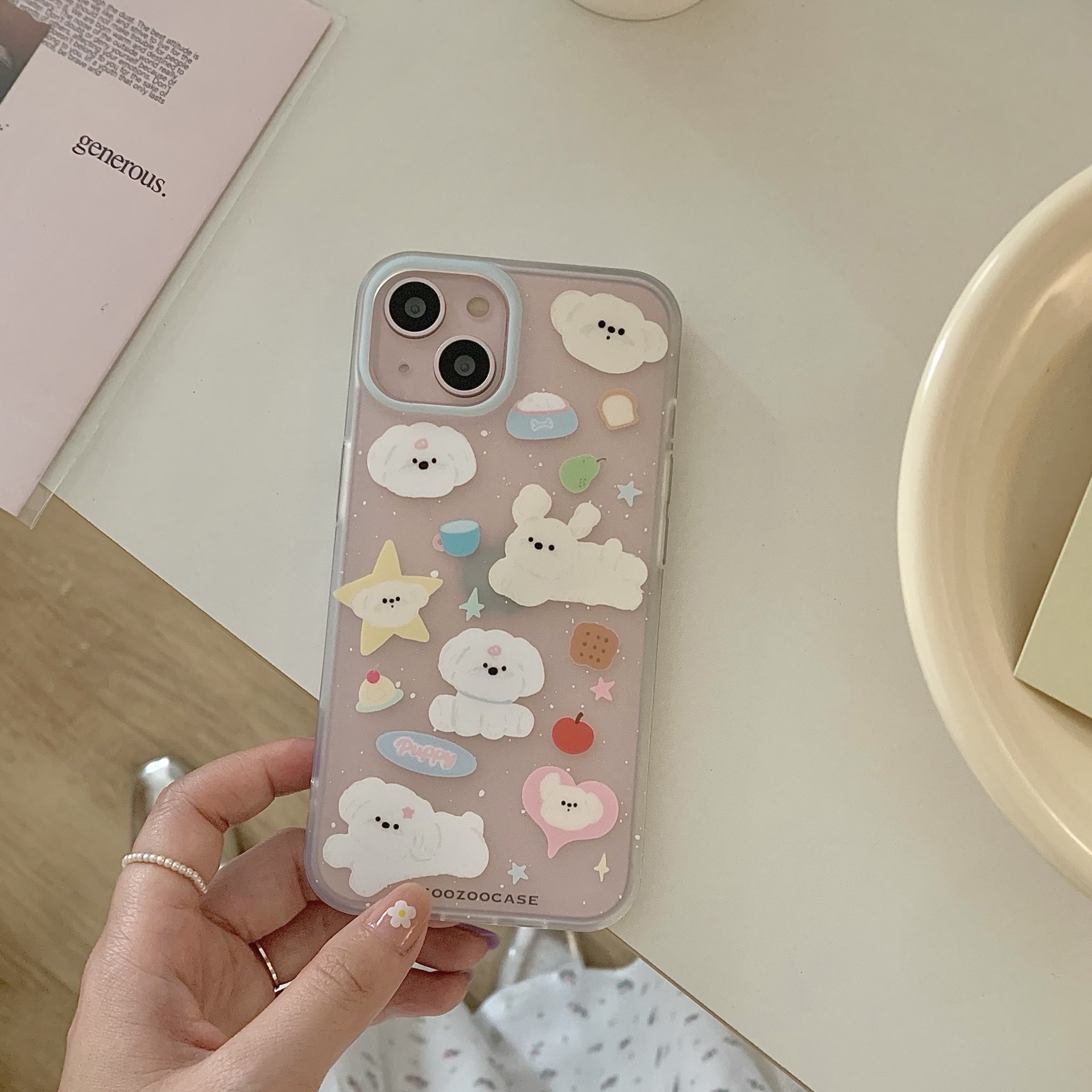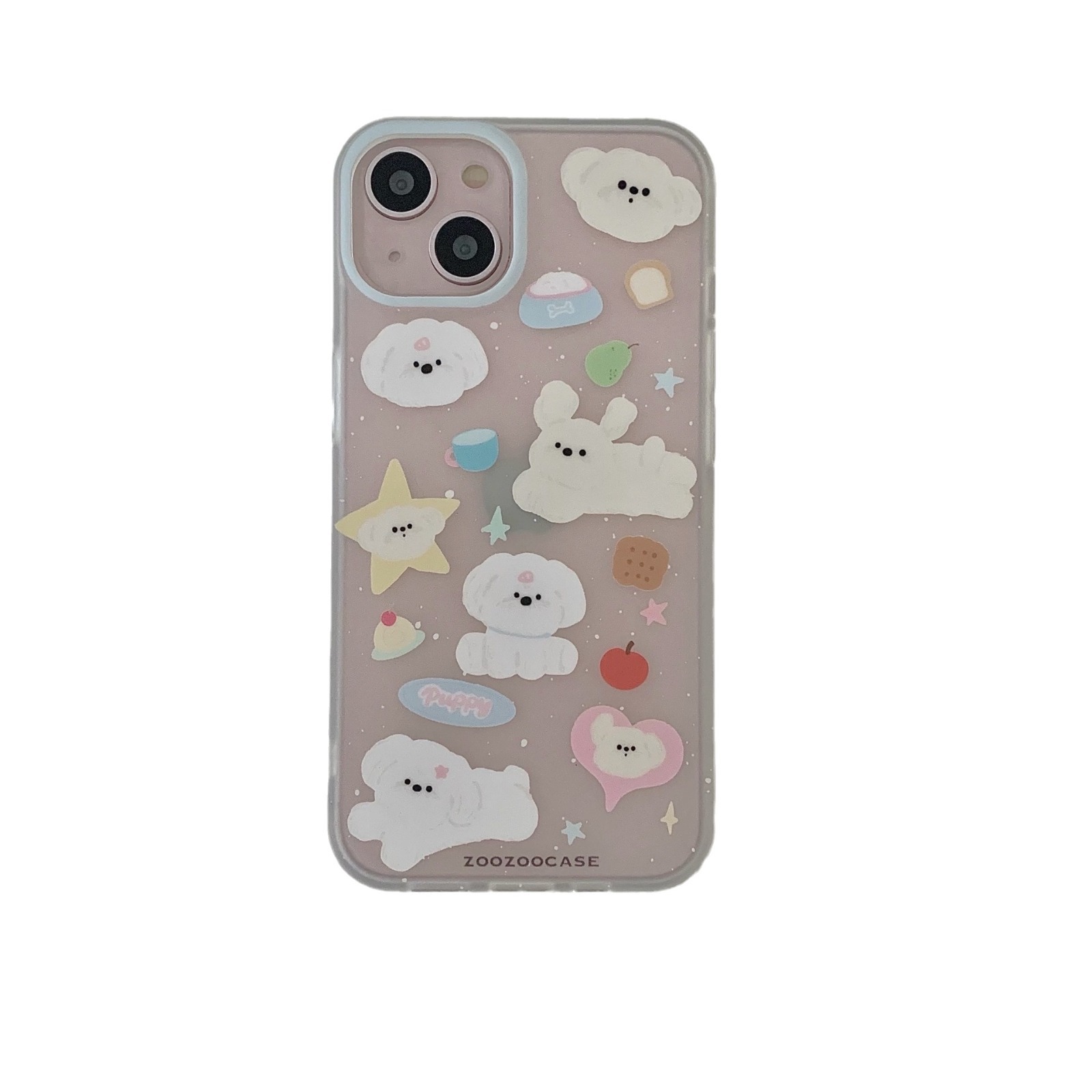 磨砂泼墨卡通小狗适用15Promax手机壳防摔14pro苹果13/12双层IMD