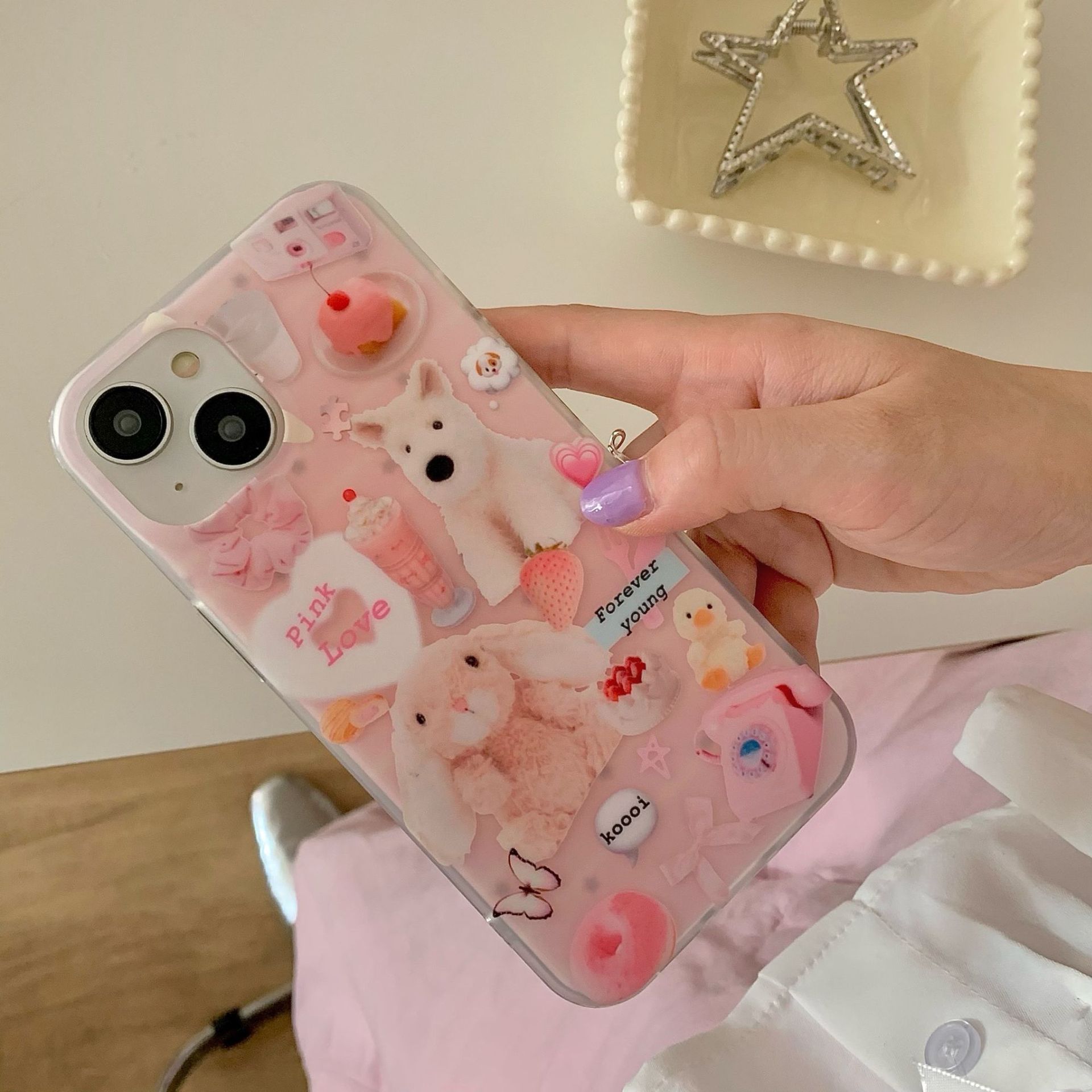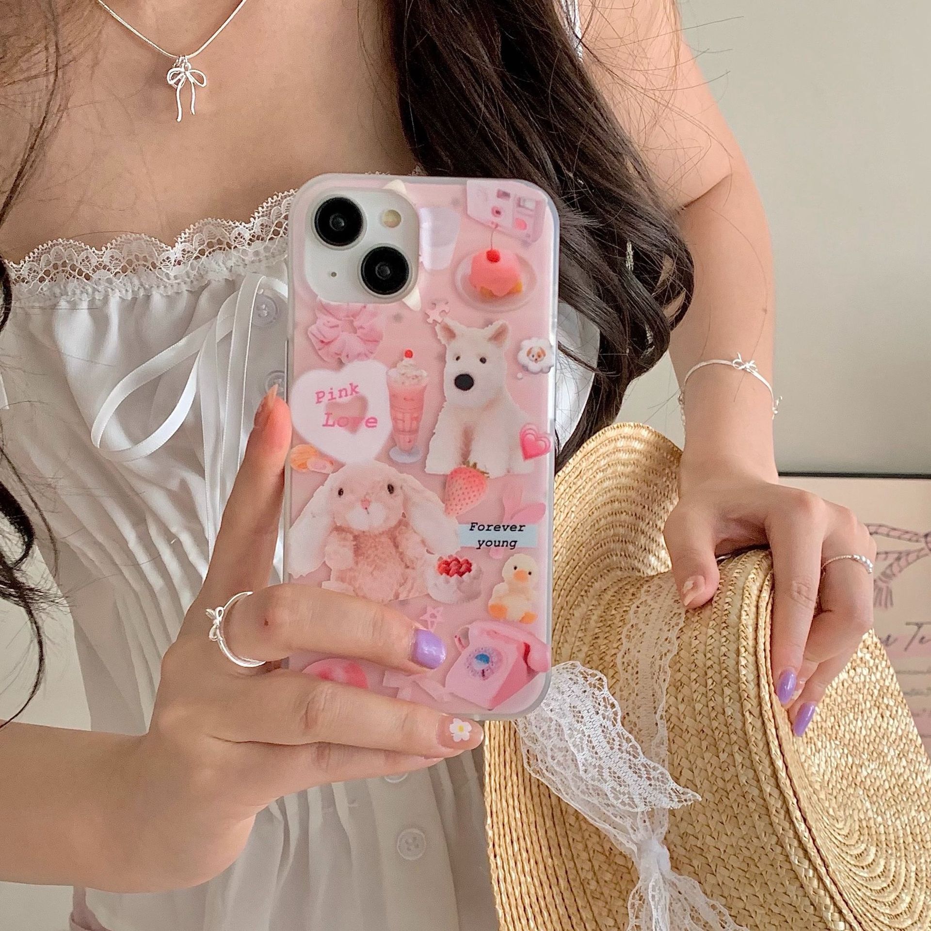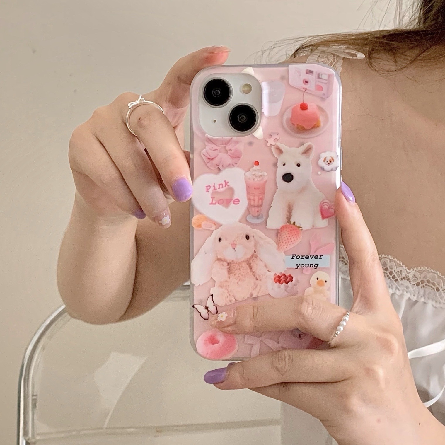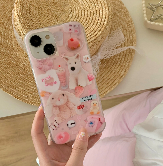 双层IMD磨砂粉色动物贴图适用15Promax手机壳14pro苹果13/12防摔