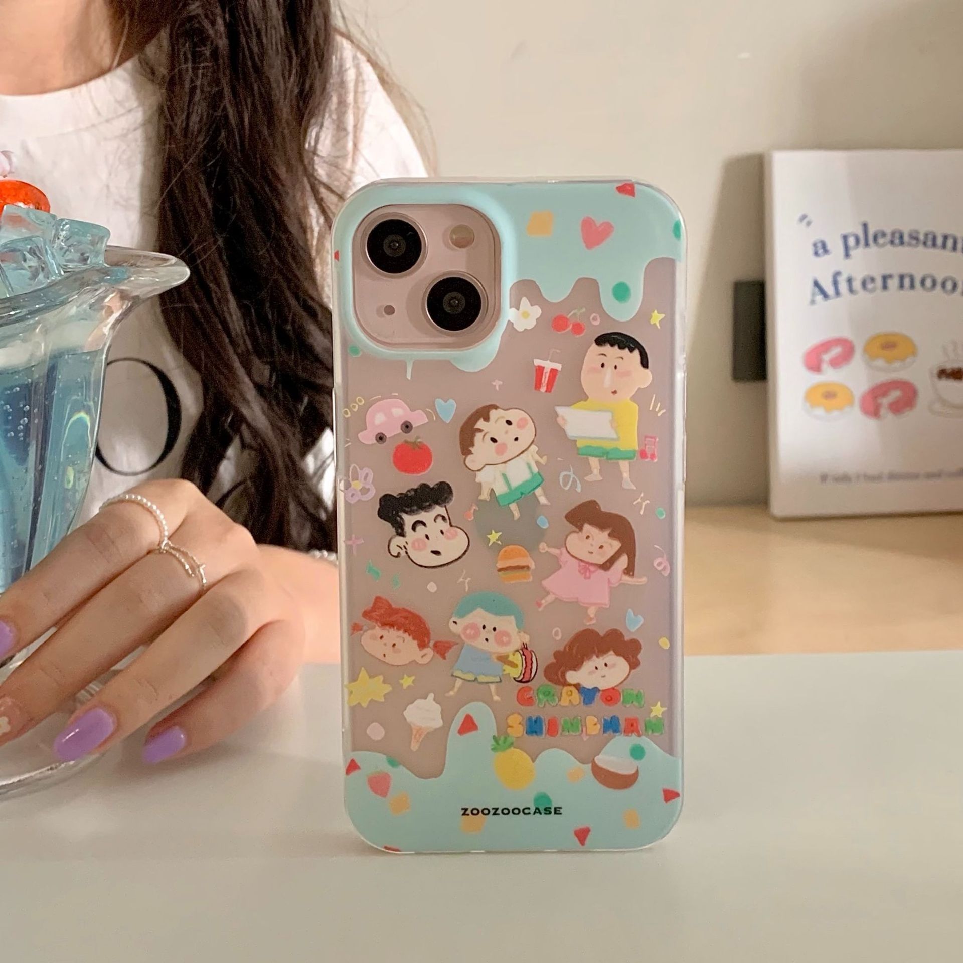 日韩ins涂鸦蜡笔小新适用15Promax手机壳双层14pro苹果13防摔12女
