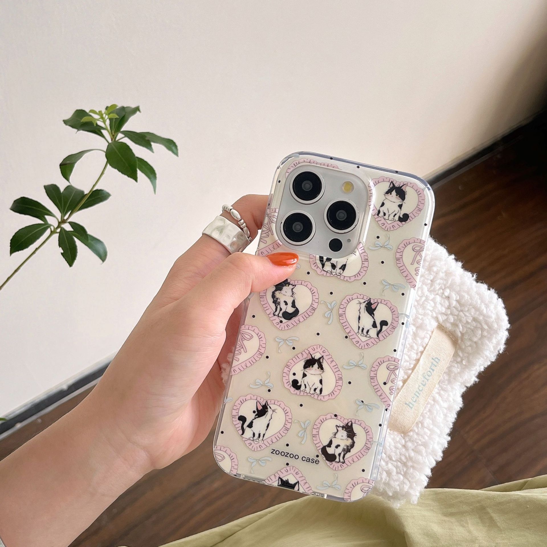双层IMD卡通爱心黑猫适用15Promax手机壳防摔14pro苹果13/12可爱