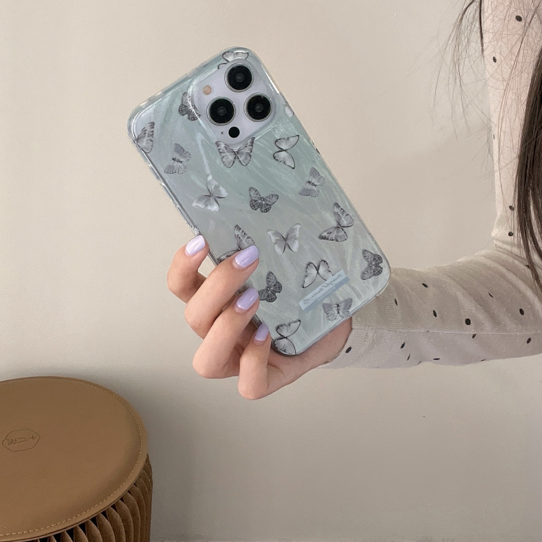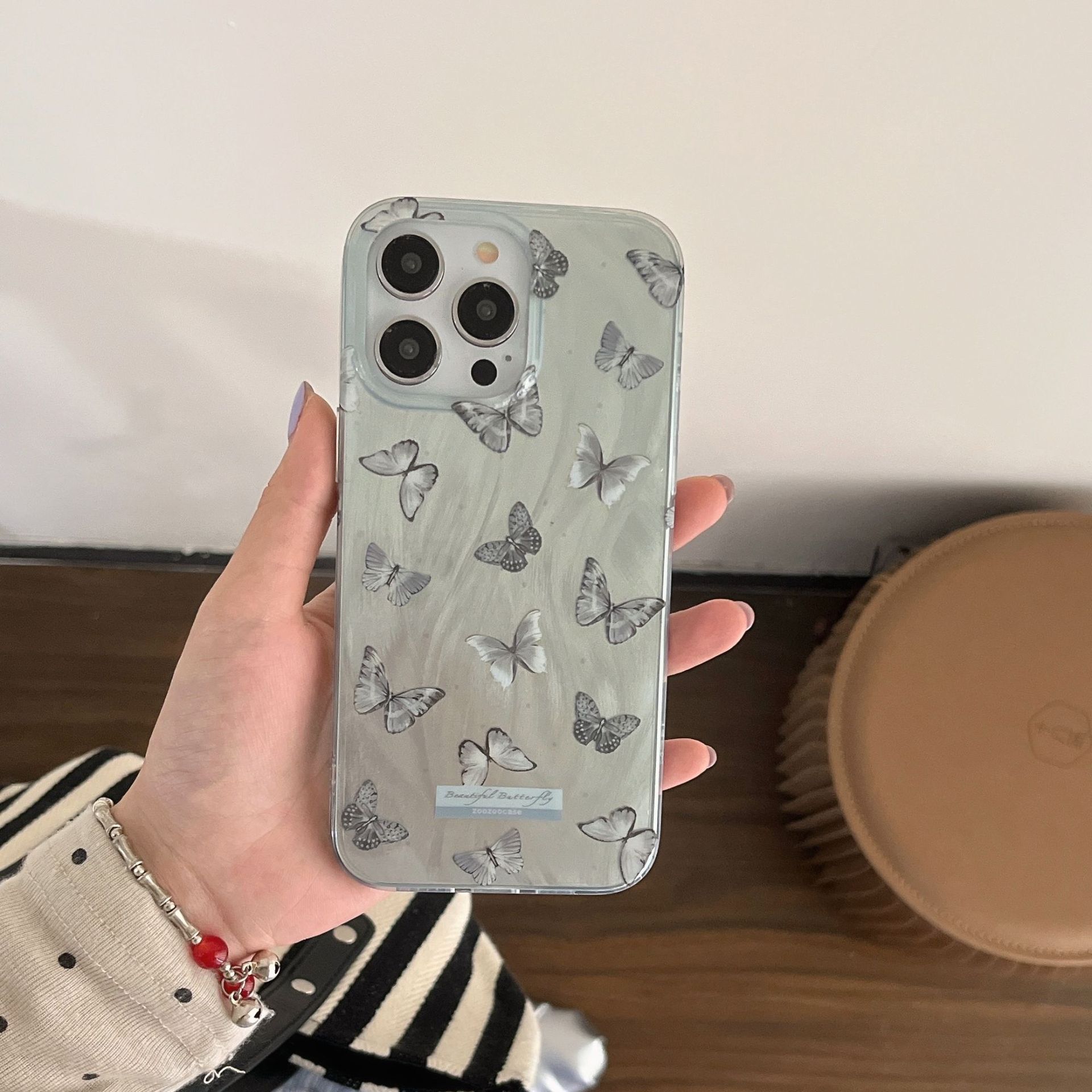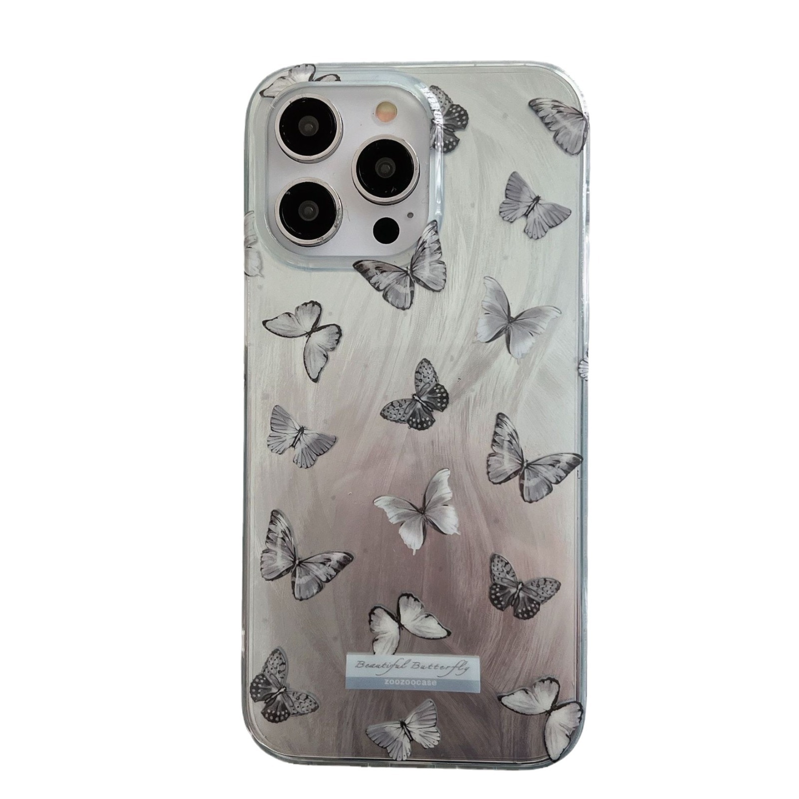 双层IMD蓝色羽纱蝴蝶适用15/14Promax手机壳苹果13个性12/11防摔
