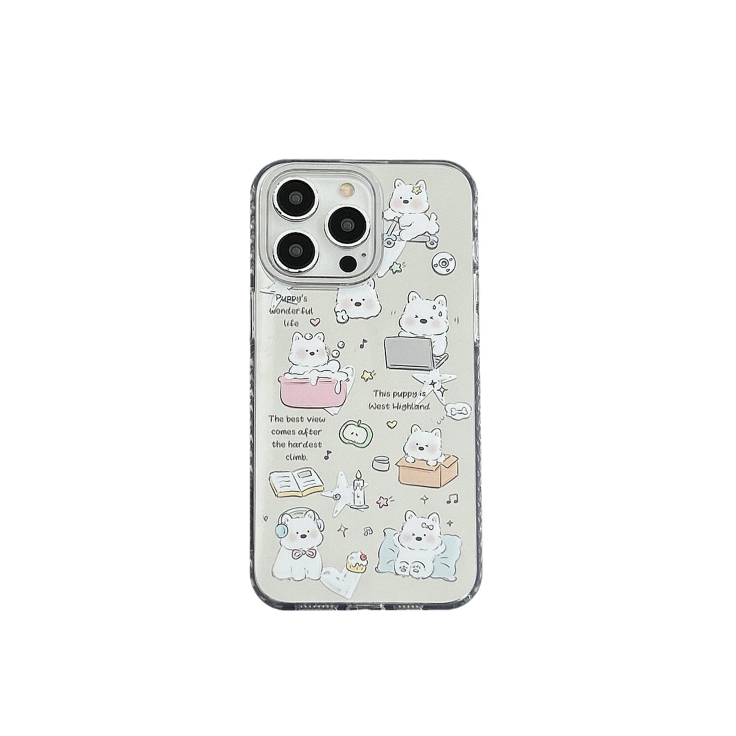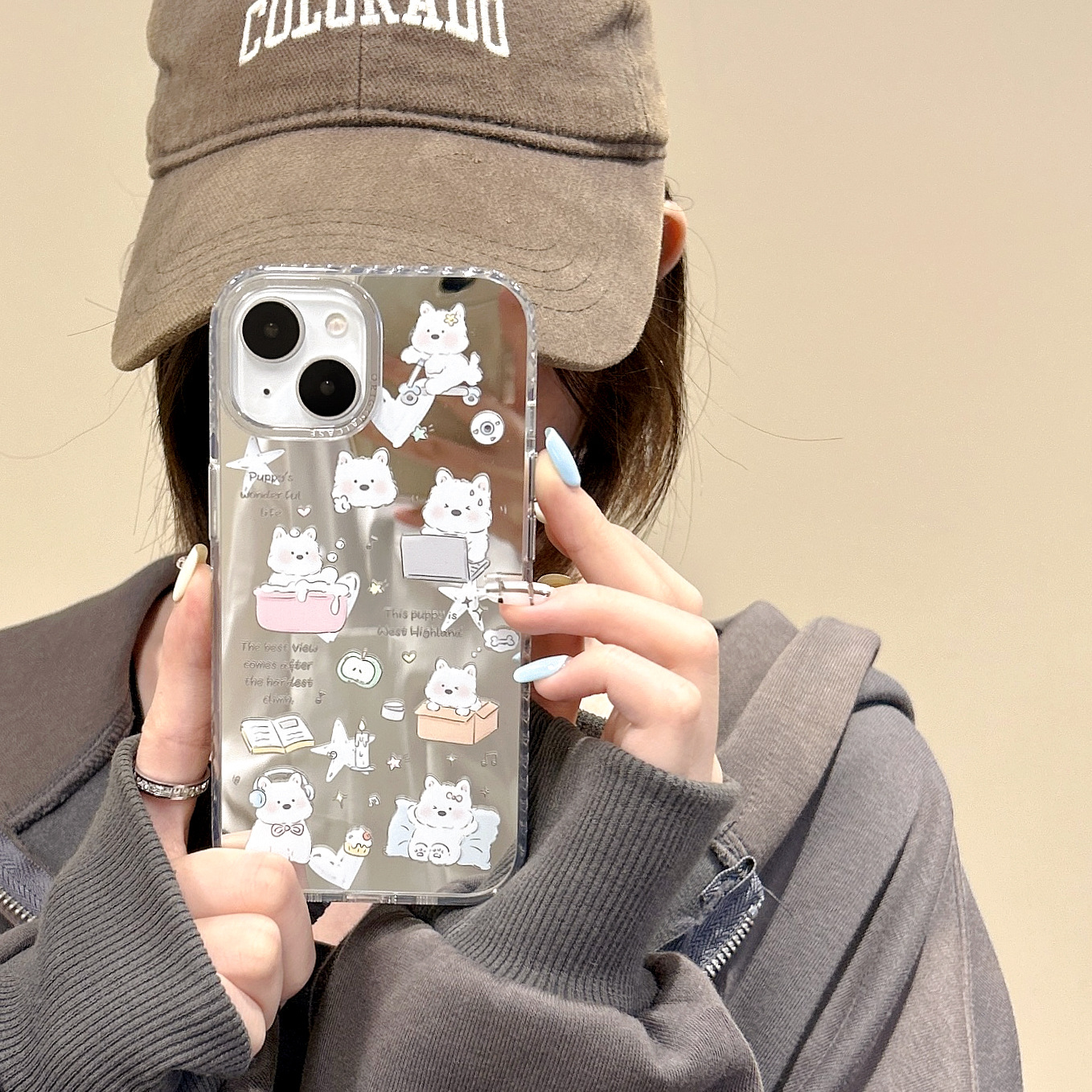 卡通ins西高地小狗适用15promax手机壳14pro苹果13镜面12/11可爱