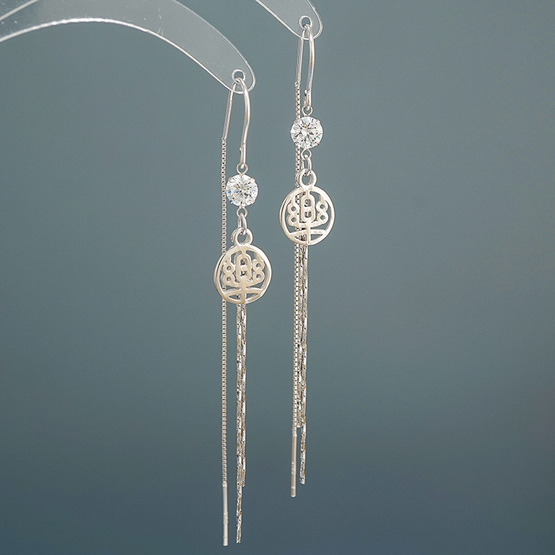 新款潮s925银耳线女 韩版气质乐字长款流苏简约易搭耳环女522EX