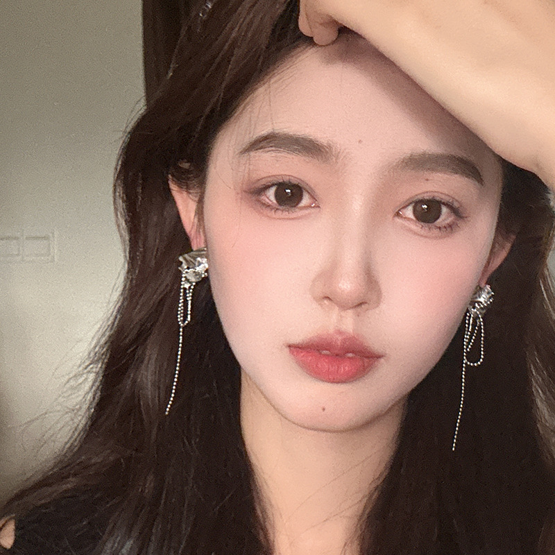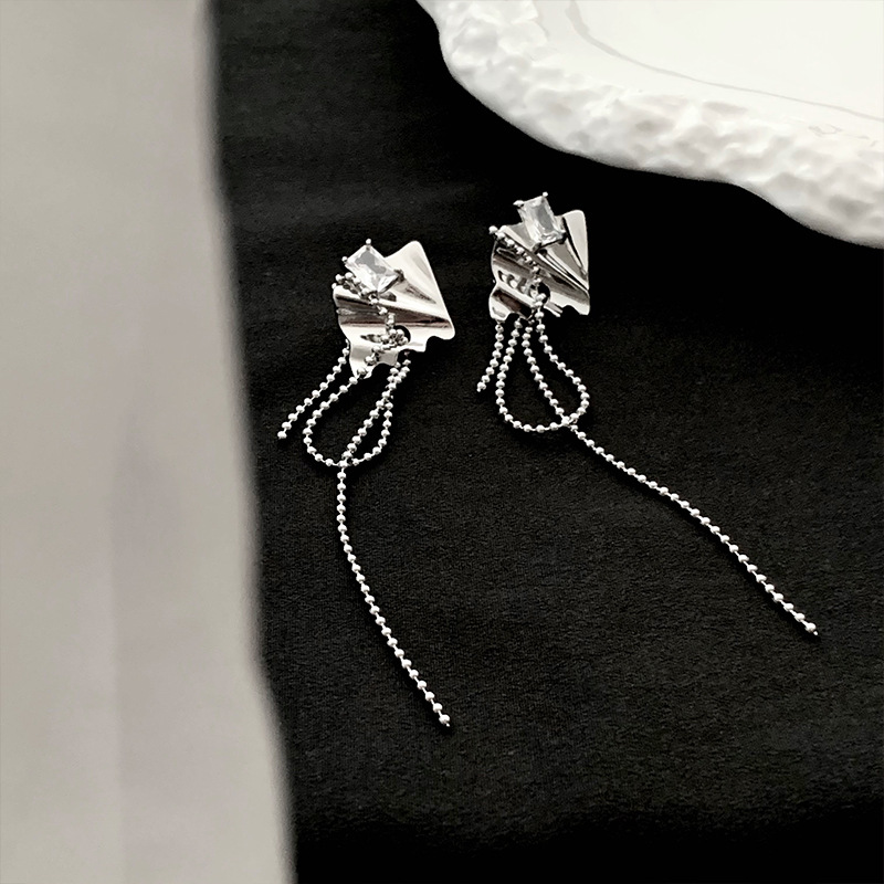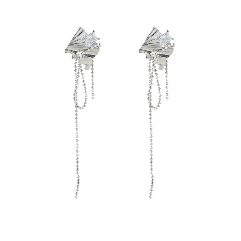 气质冷淡风金属褶皱镶钻流苏耳环小众个性设计感耳饰个性简约耳坠