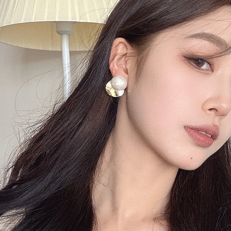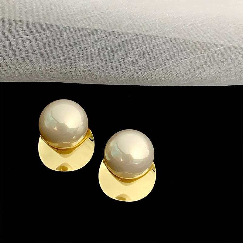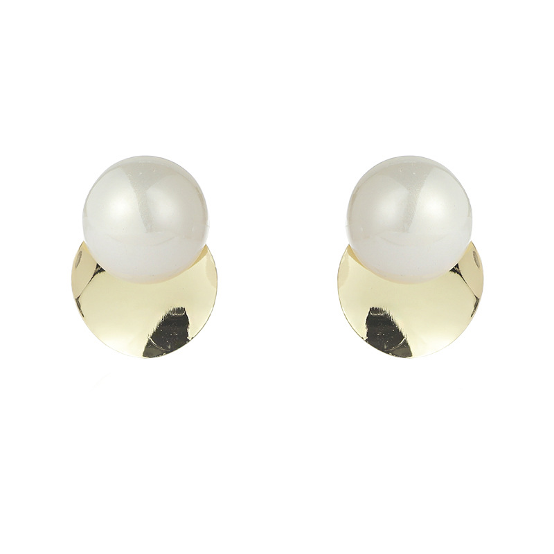小众设计感珍珠金属圆片耳环女高级感简约百搭耳钉新款耳饰