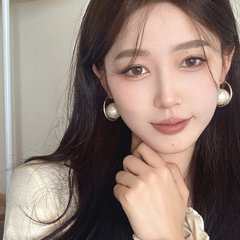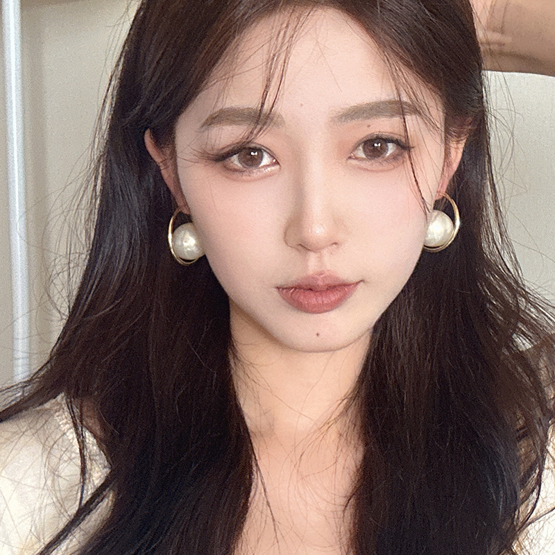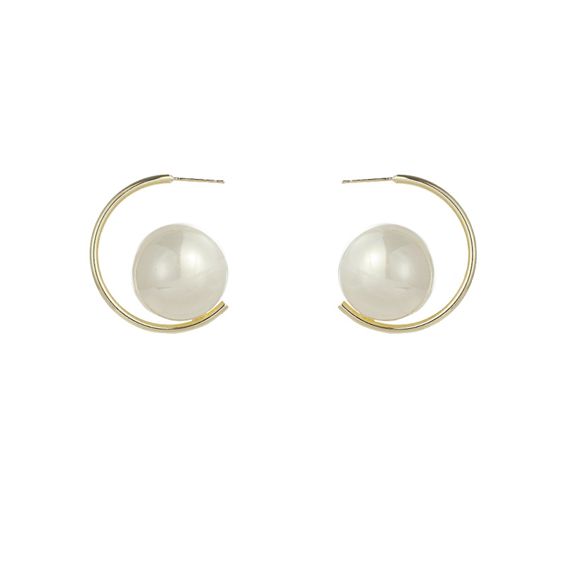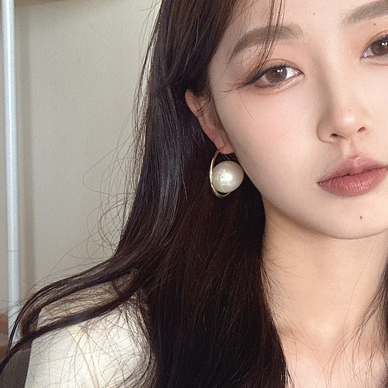 独特设计大珍珠耳环小众设计感高级金属c型耳圈气质复古港风耳饰