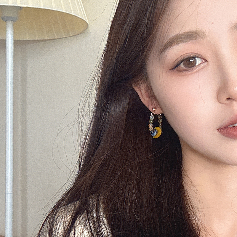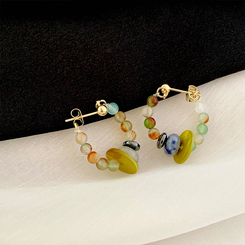 复古民族风彩色新中式串珠耳环女夸张耳钉小众设计感独特个性耳饰
