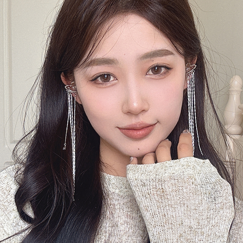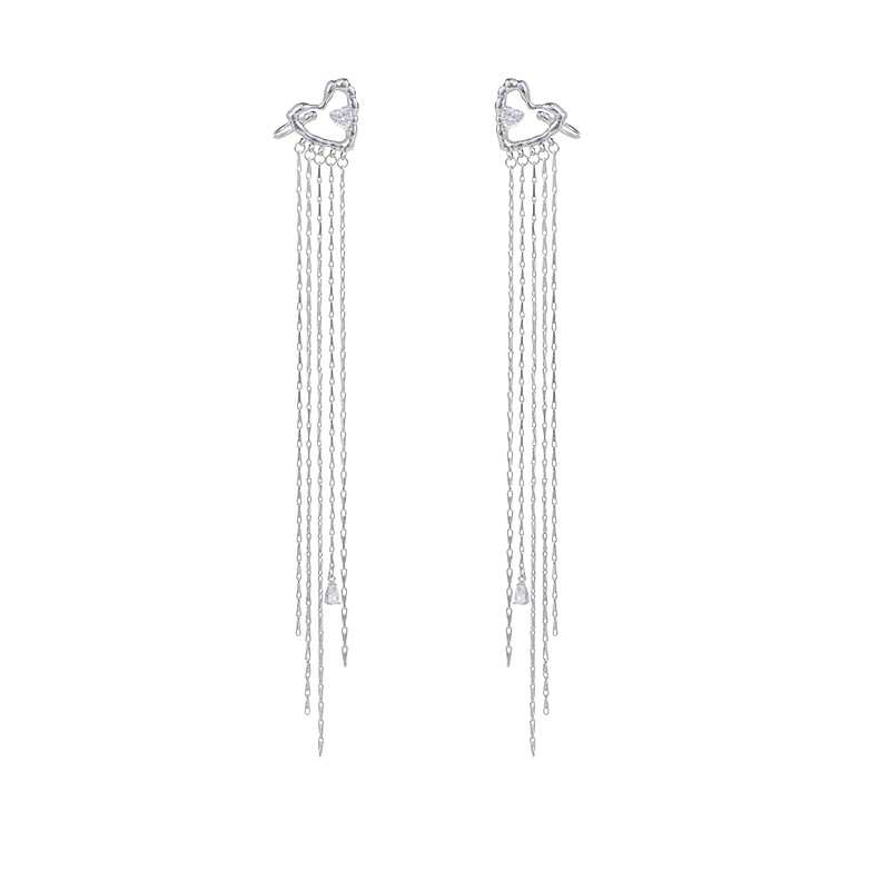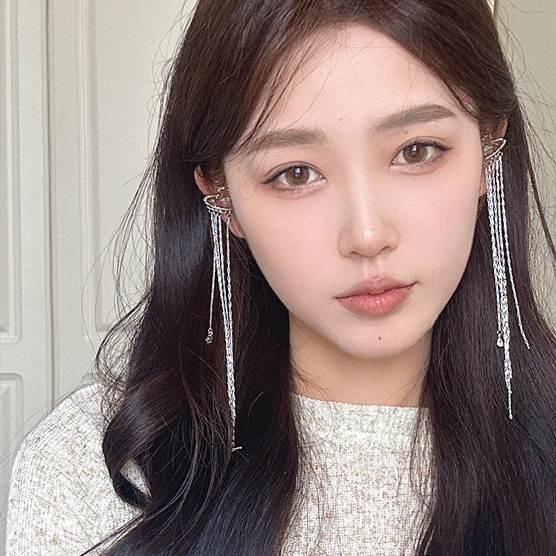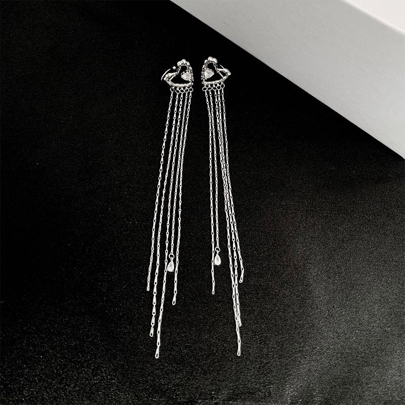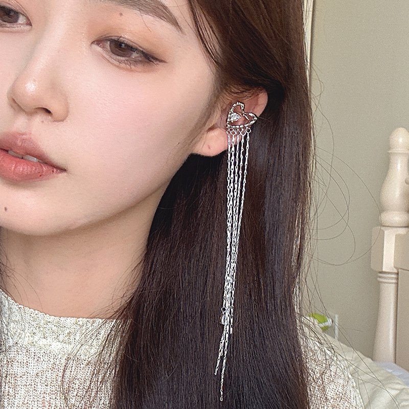 小众高级感爱心锆石流苏耳夹新款气质优雅耳骨夹无耳洞耳饰