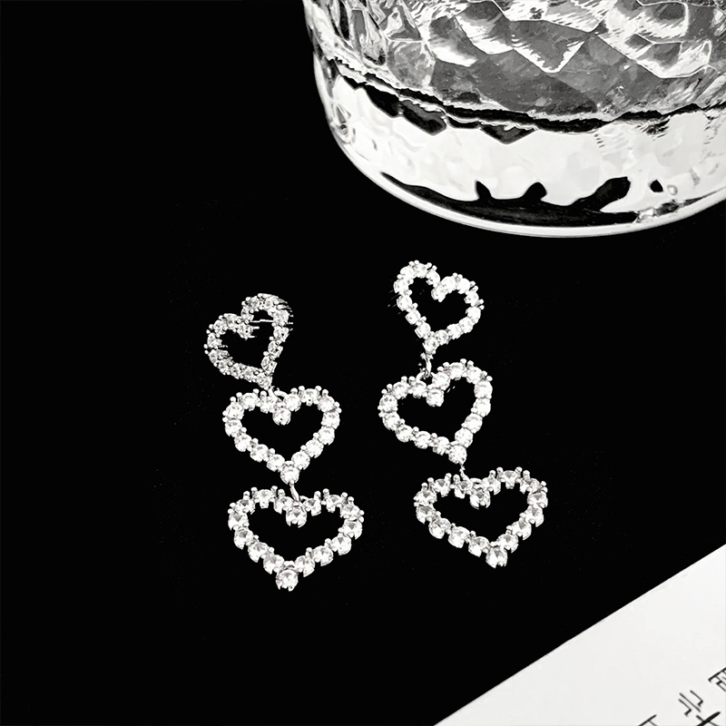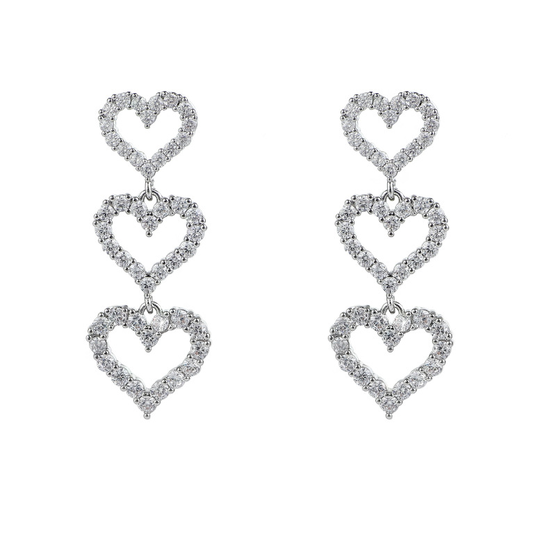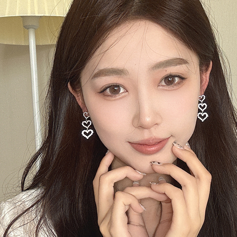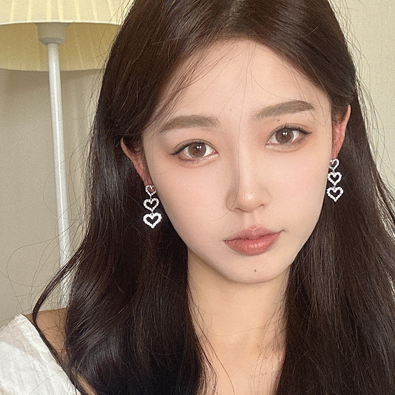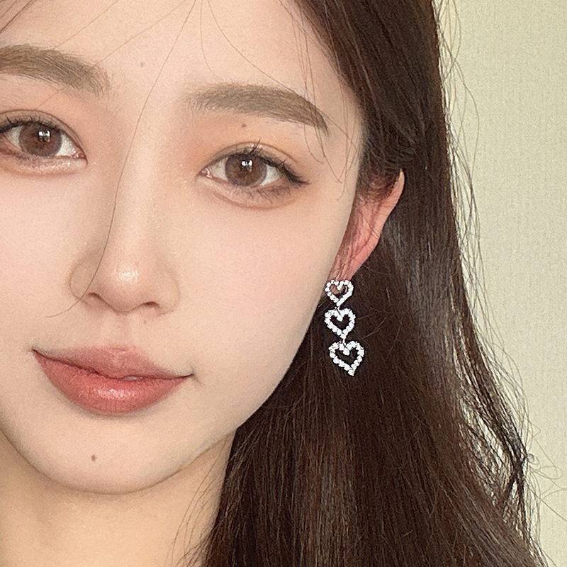 心动旋律超闪镂空爱心长款耳环小众设计感气质镶钻耳饰桃心耳坠潮