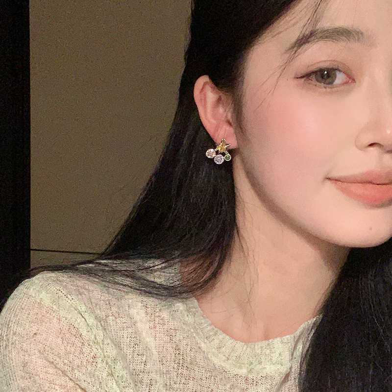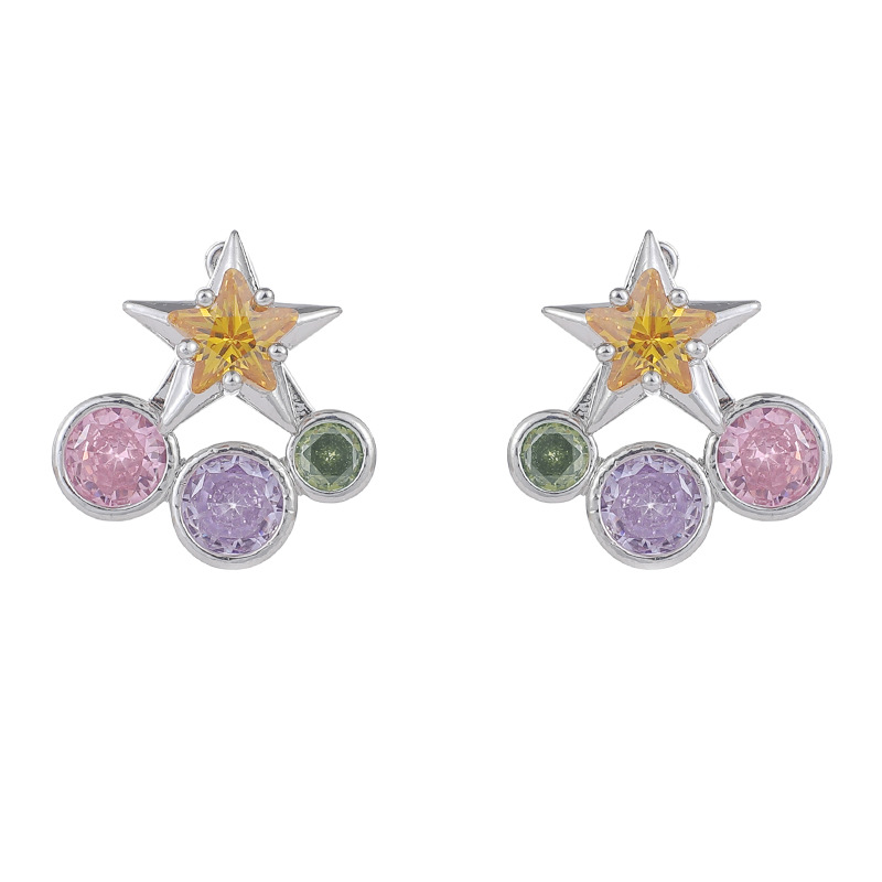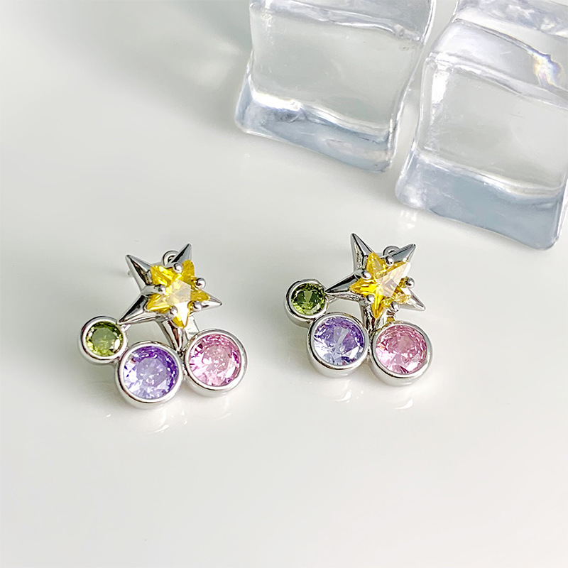 夏日多巴胺彩钻五角星耳钉小众设计百搭气质耳环个性一款两戴耳饰