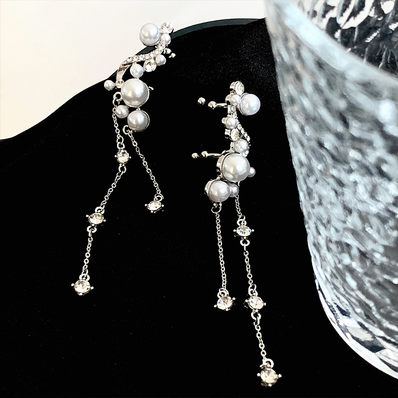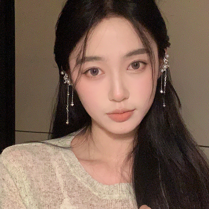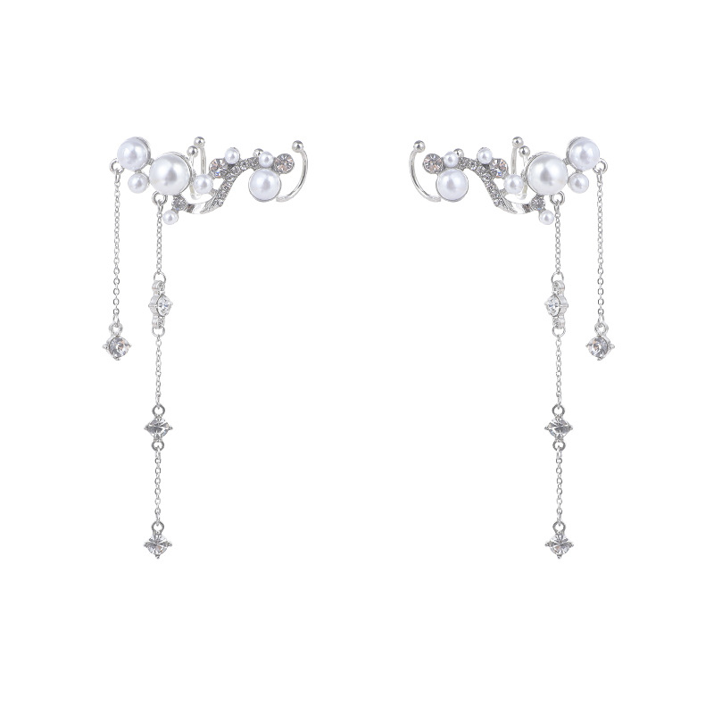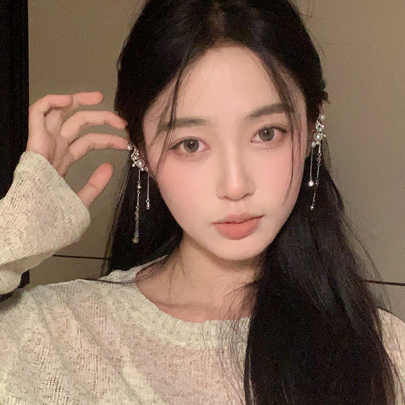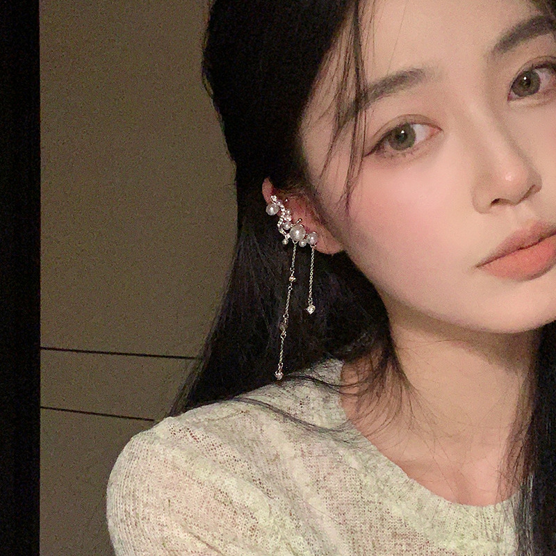 超仙精灵耳珍珠流苏耳环女 ins气质高级感百搭耳骨夹夹无耳洞耳饰
