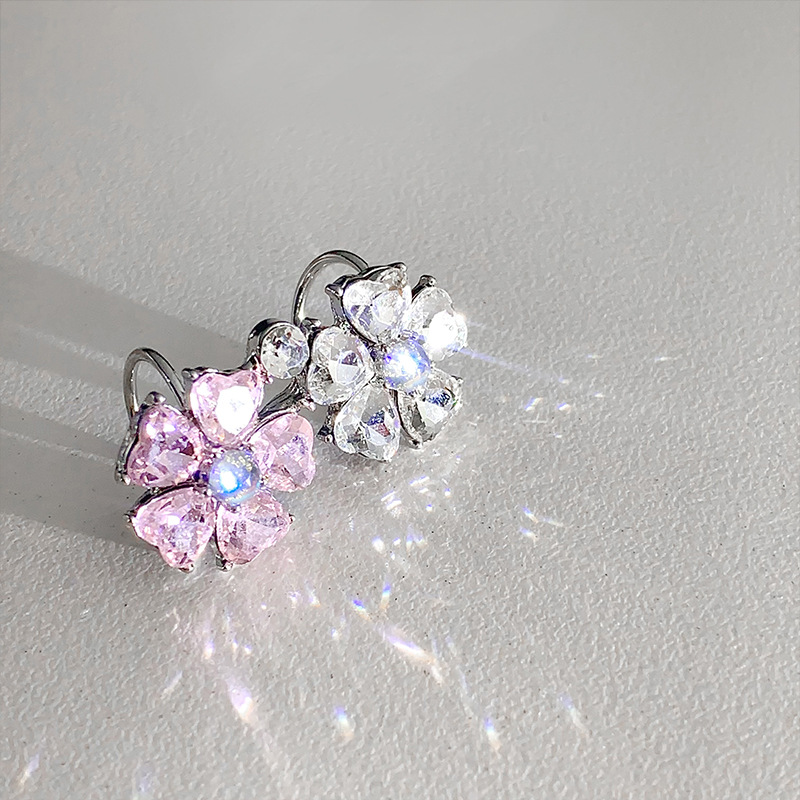 小众设计精致锆石爱心花朵耳骨夹女无耳洞耳夹夏日轻奢高级感耳饰