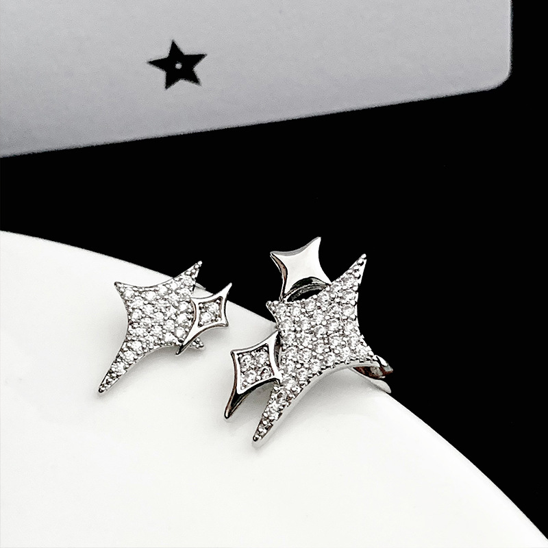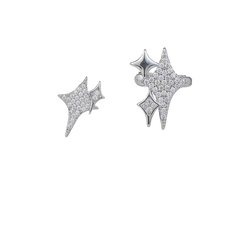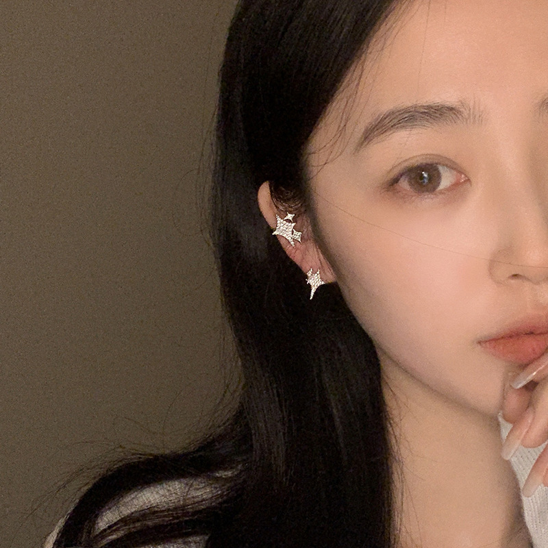 独特设计感镶钻芒星耳夹耳钉套装耳环轻奢高级感不对称小众耳饰
