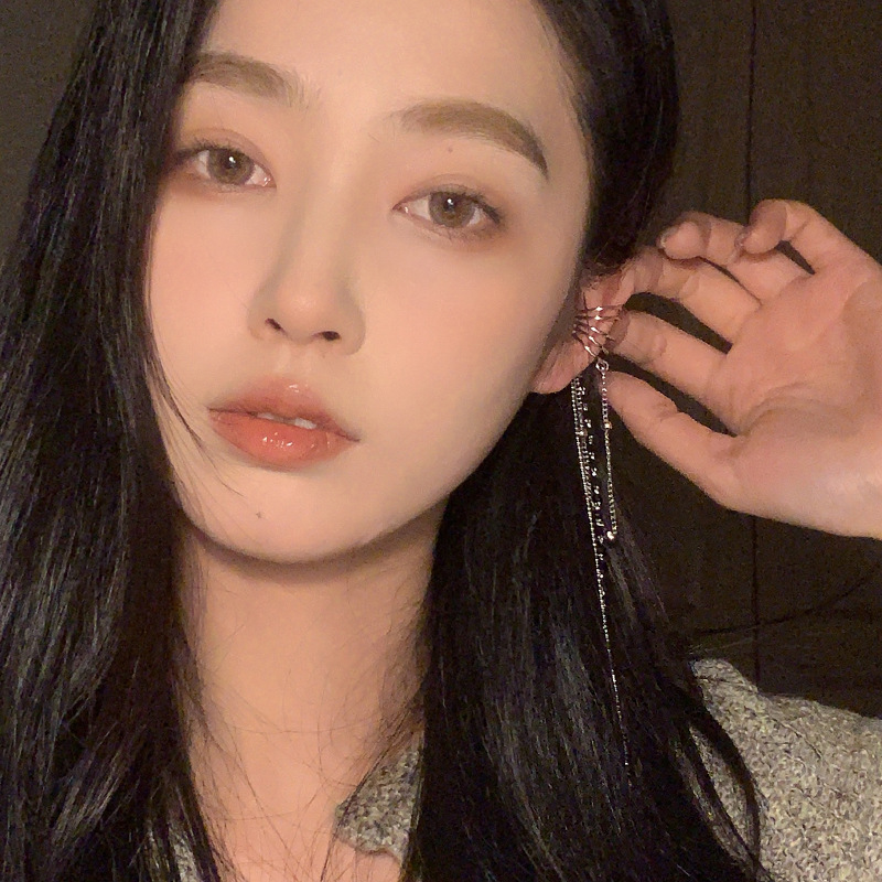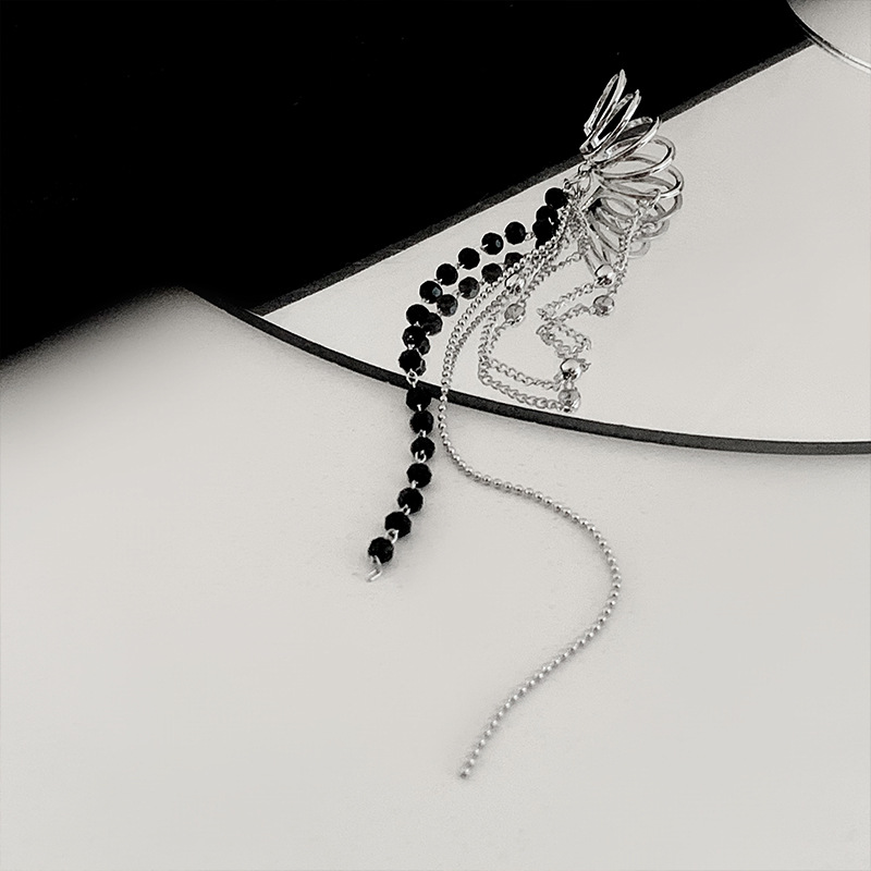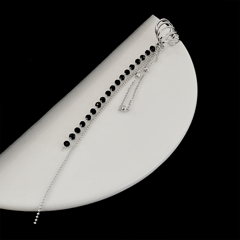 气质设计感黑水晶流苏耳骨夹个性小众镶钻无耳洞耳夹百搭多层耳饰