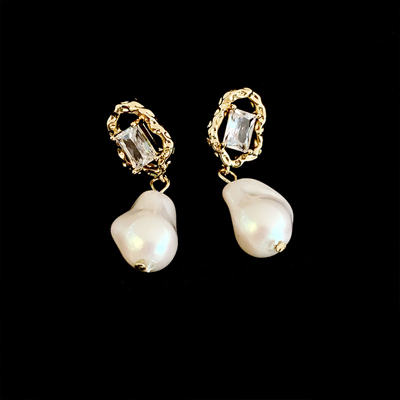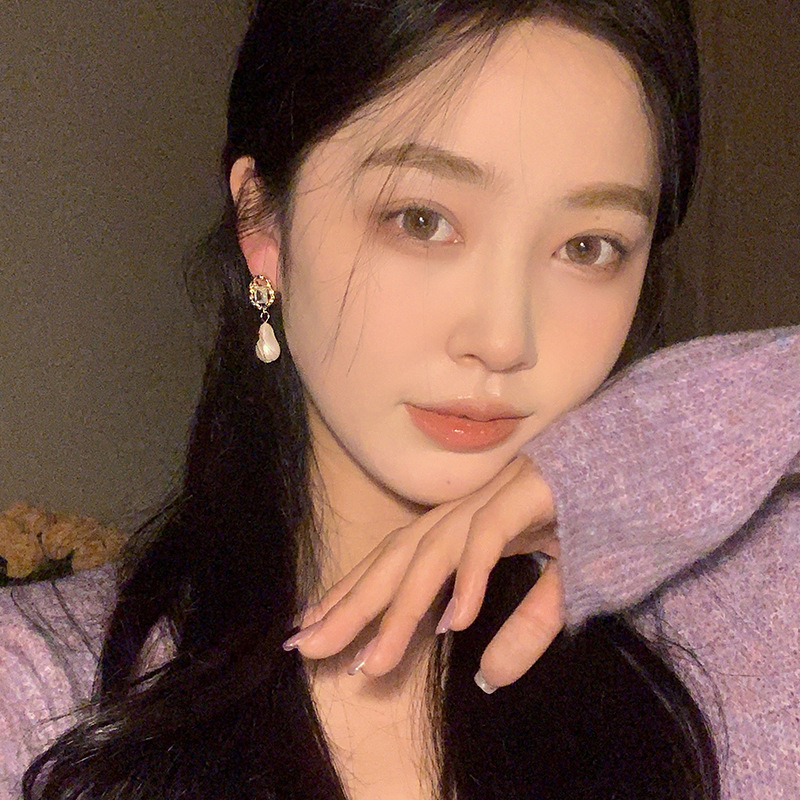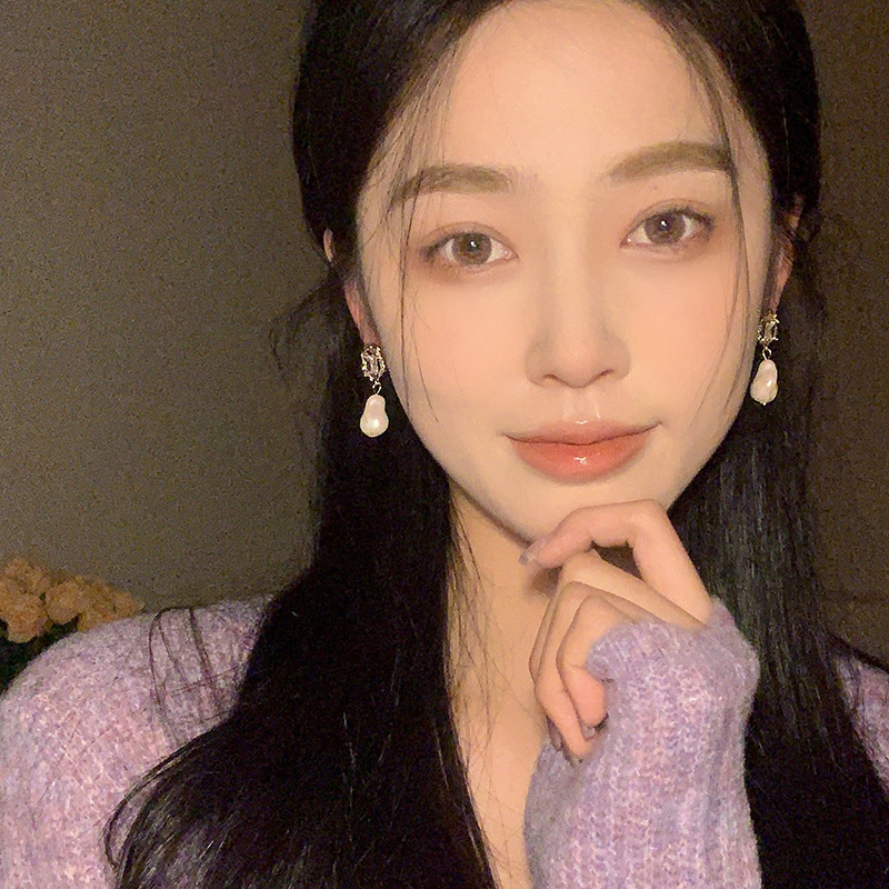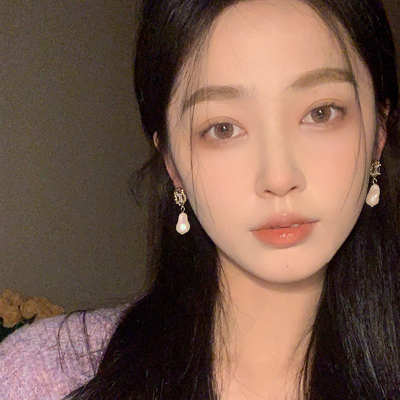 法式复古高级感锆石珍珠耳环个性设计感不规则耳钉气质轻奢耳饰品