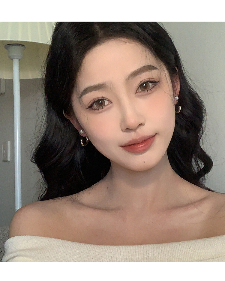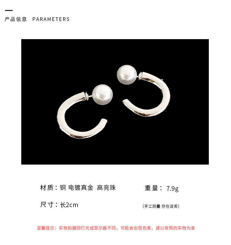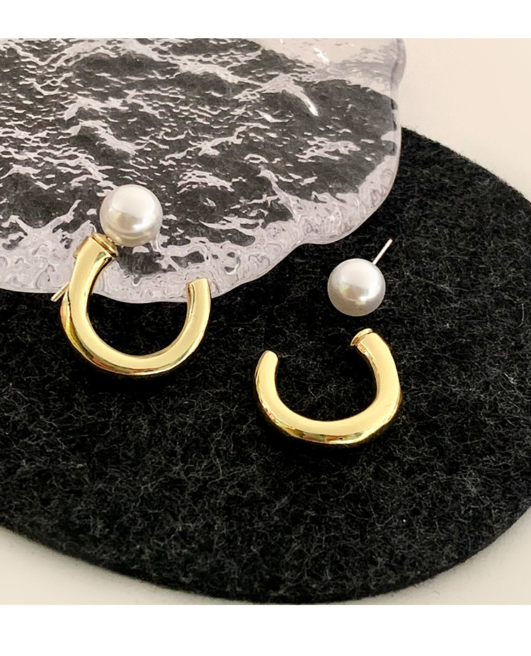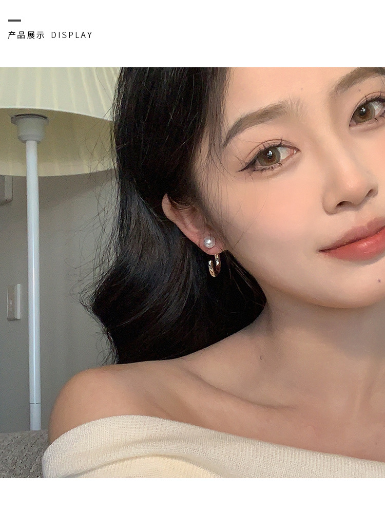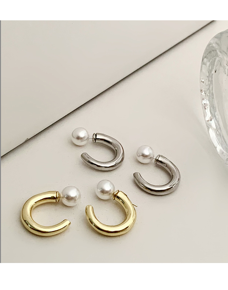 冷淡风简约C形珍珠圆圈耳环 气质个性小众设计感百搭耳圈通勤耳饰