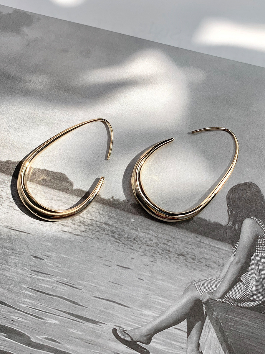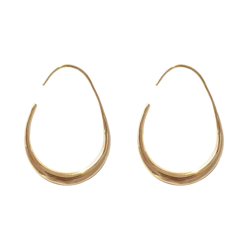 ins简约冷淡风气质椭圆形金属耳环 小众设计感耳圈百搭通勤风耳饰