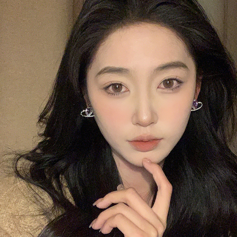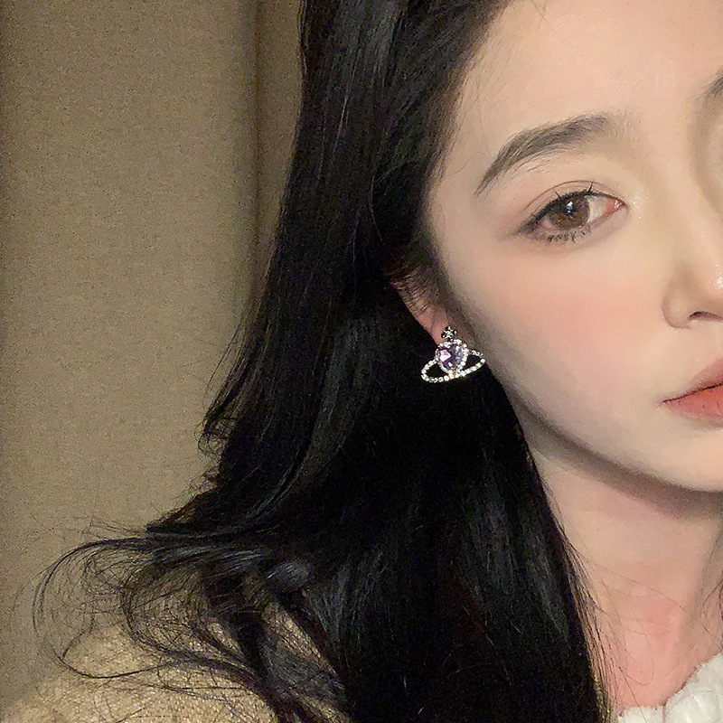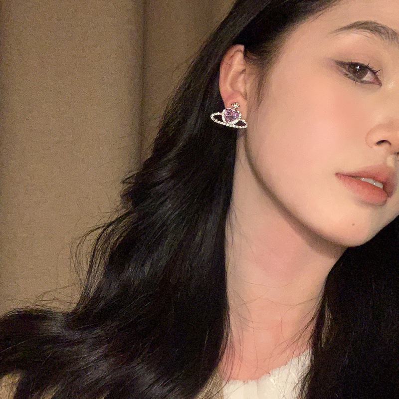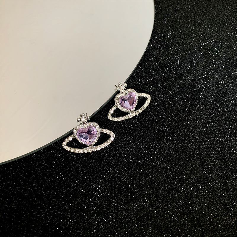 爱心星球紫色宝石耳环春夏气质温柔精致浪漫闪耀锆石耳钉百搭耳饰