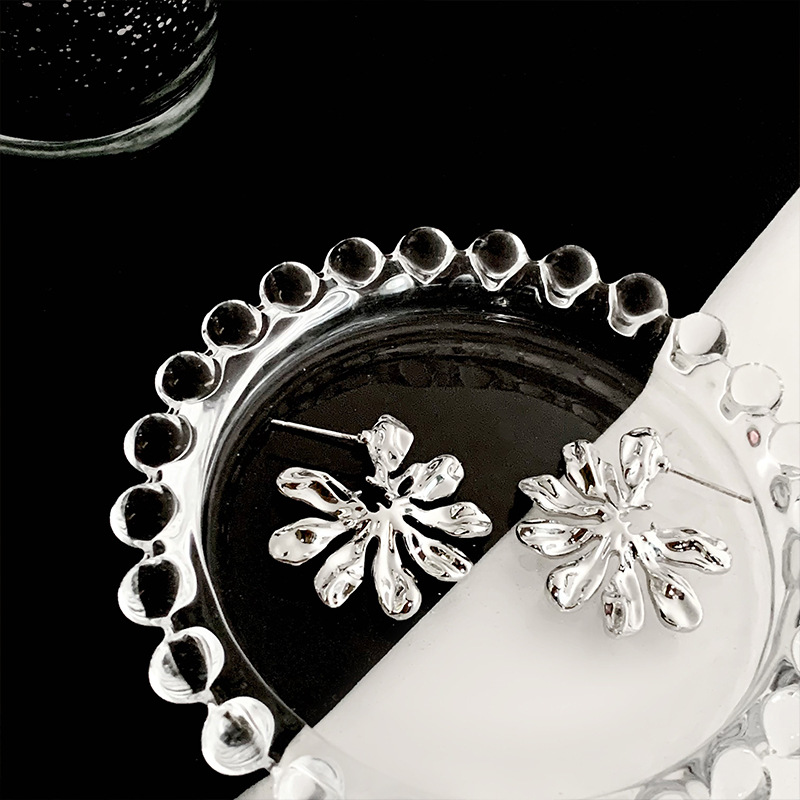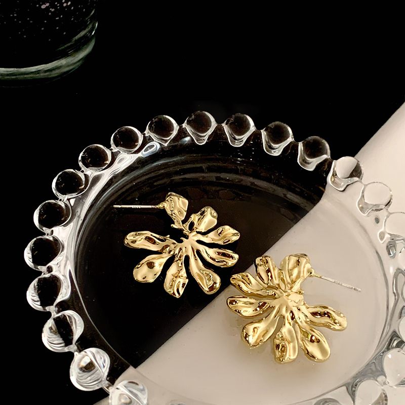 金属夸张大花朵耳环 ins冷淡风小众设计感高级感耳钉时尚百搭耳饰