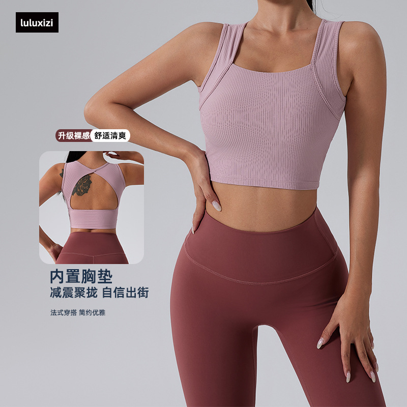 新品跨境高强度防震裸感运动内衣女 跑步速干健身瑜伽服背心