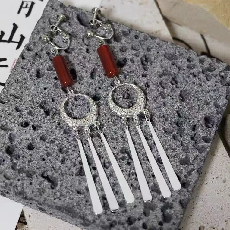 南小姐《带一支格桑》原创民族新中式苗族银色流苏长耳环大理耳夹