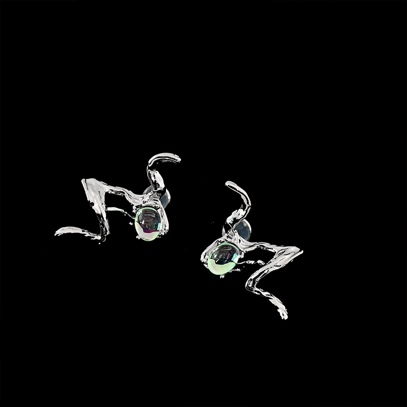 原创甜酷辣妹液态金属耳环女气质高级感欧泊石耳饰小众设计感耳钉