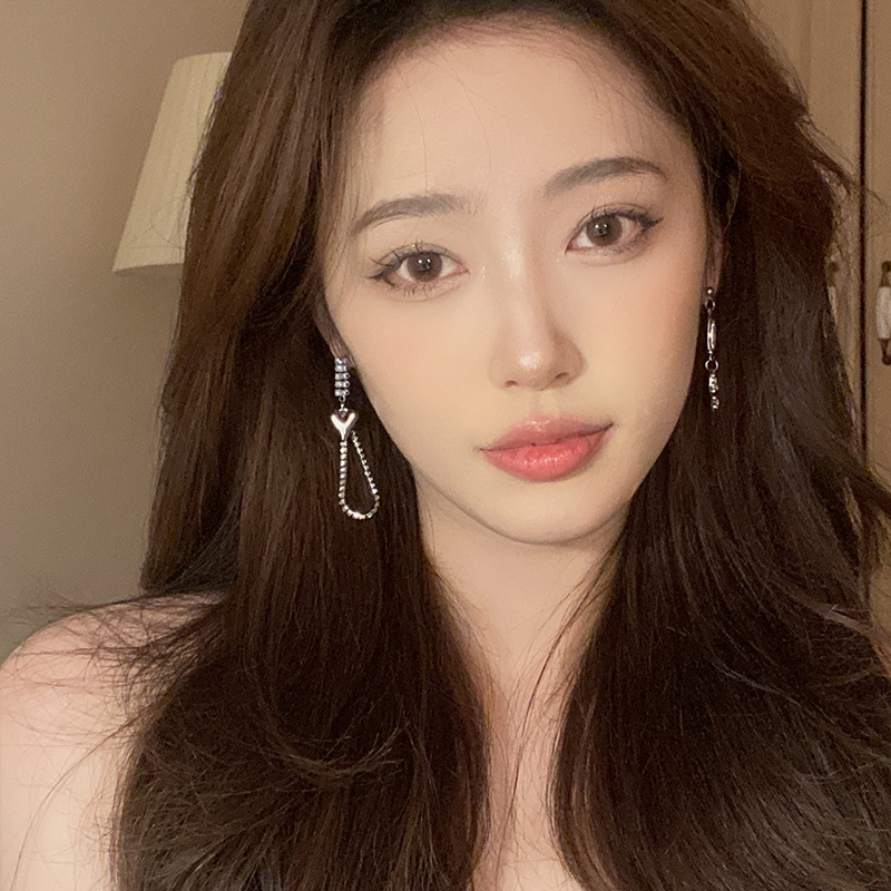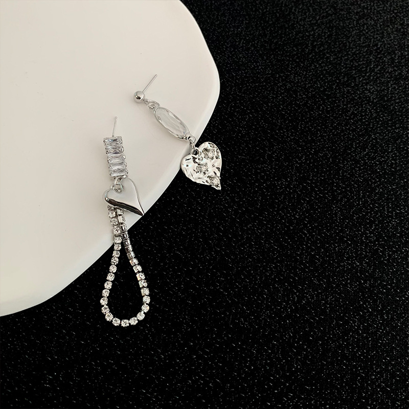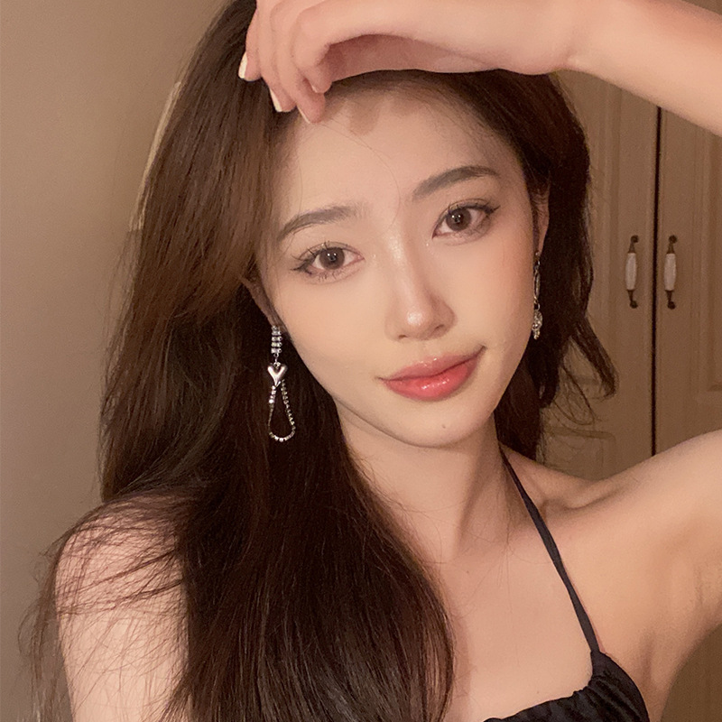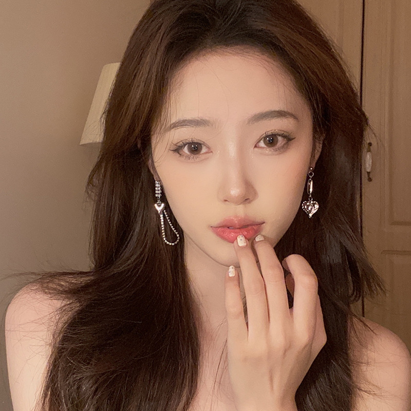 甜酷个性不对称爱心链条耳环小众设计高级感耳钉 ins冷淡风耳饰品
